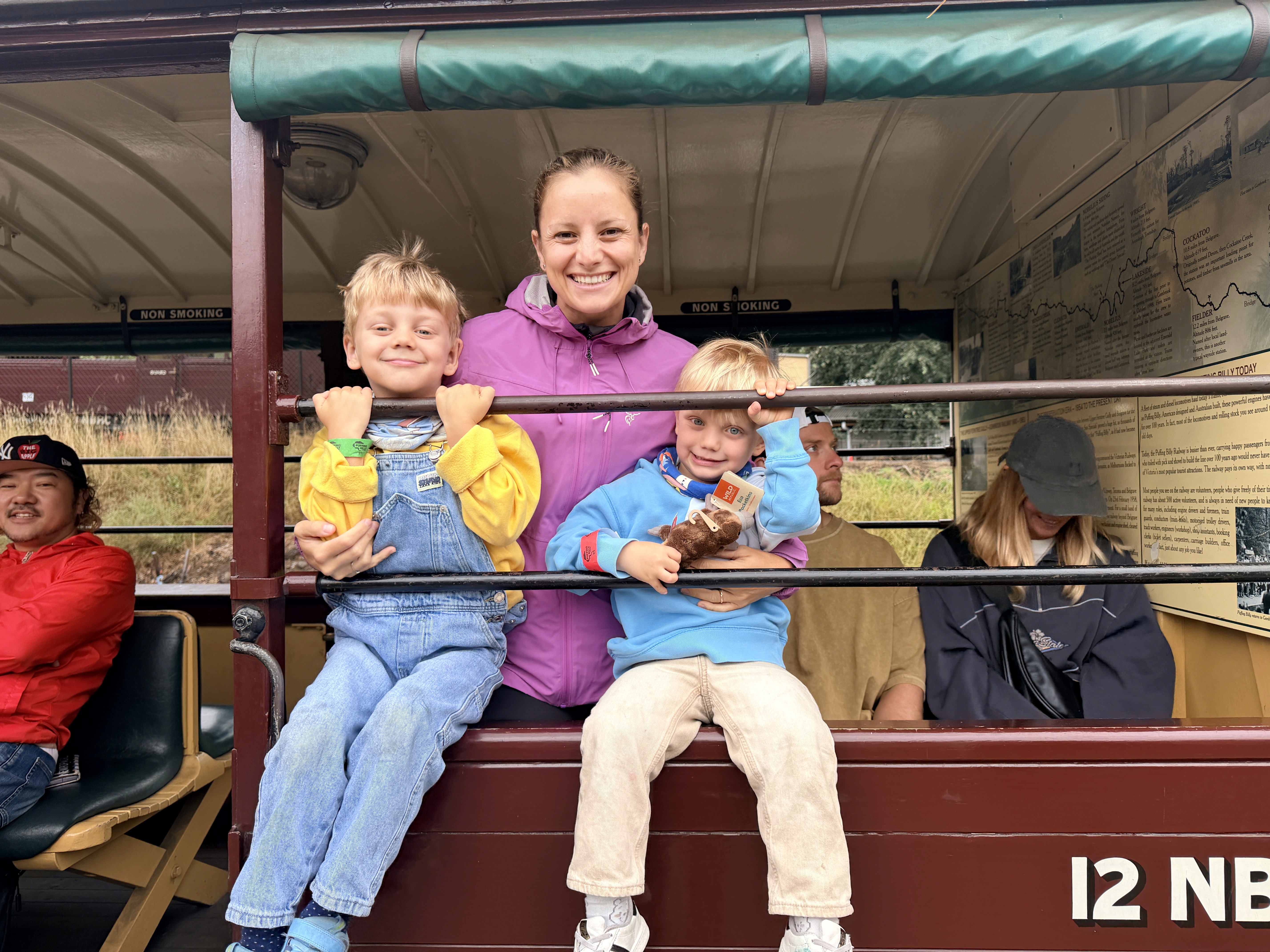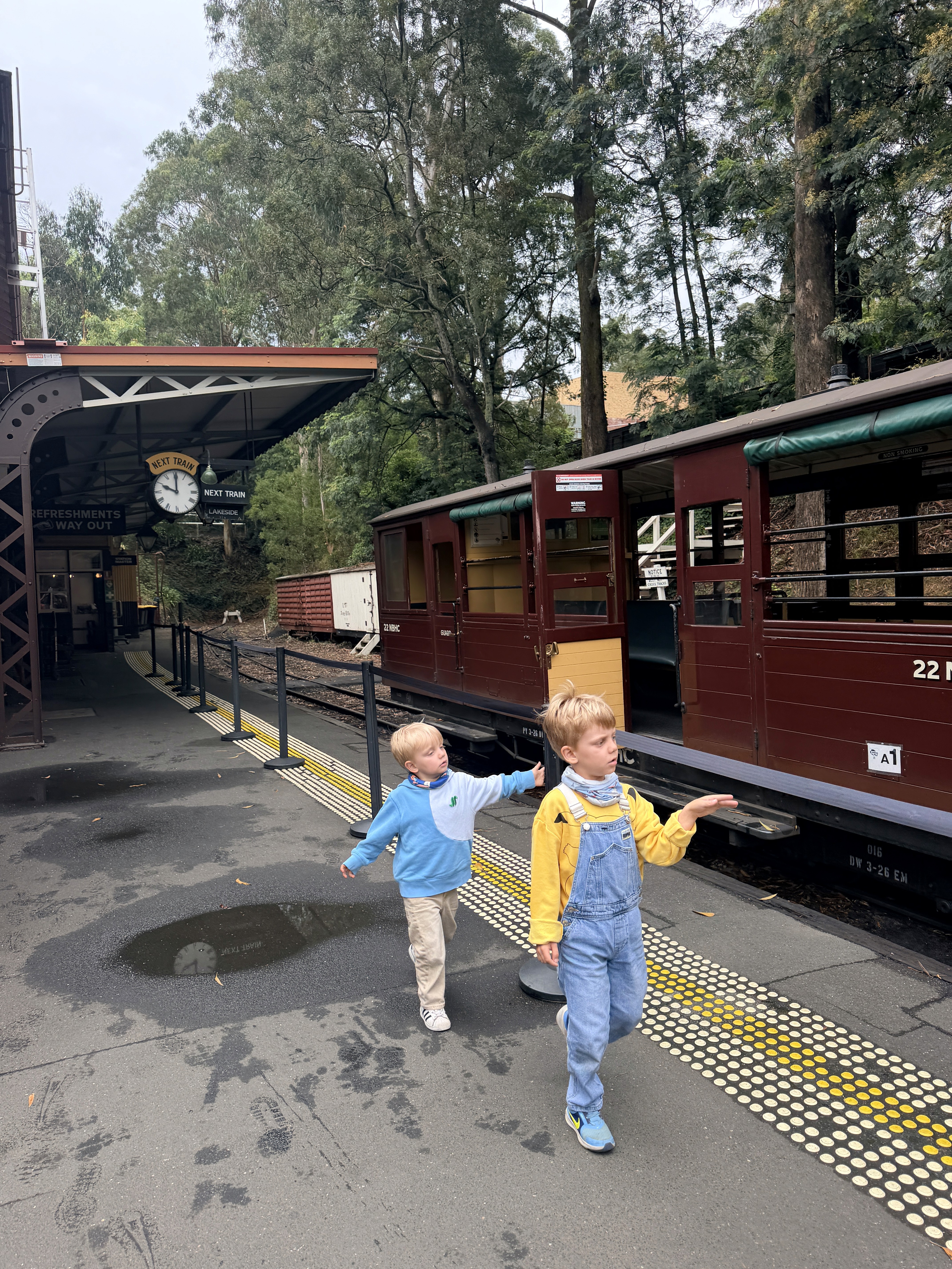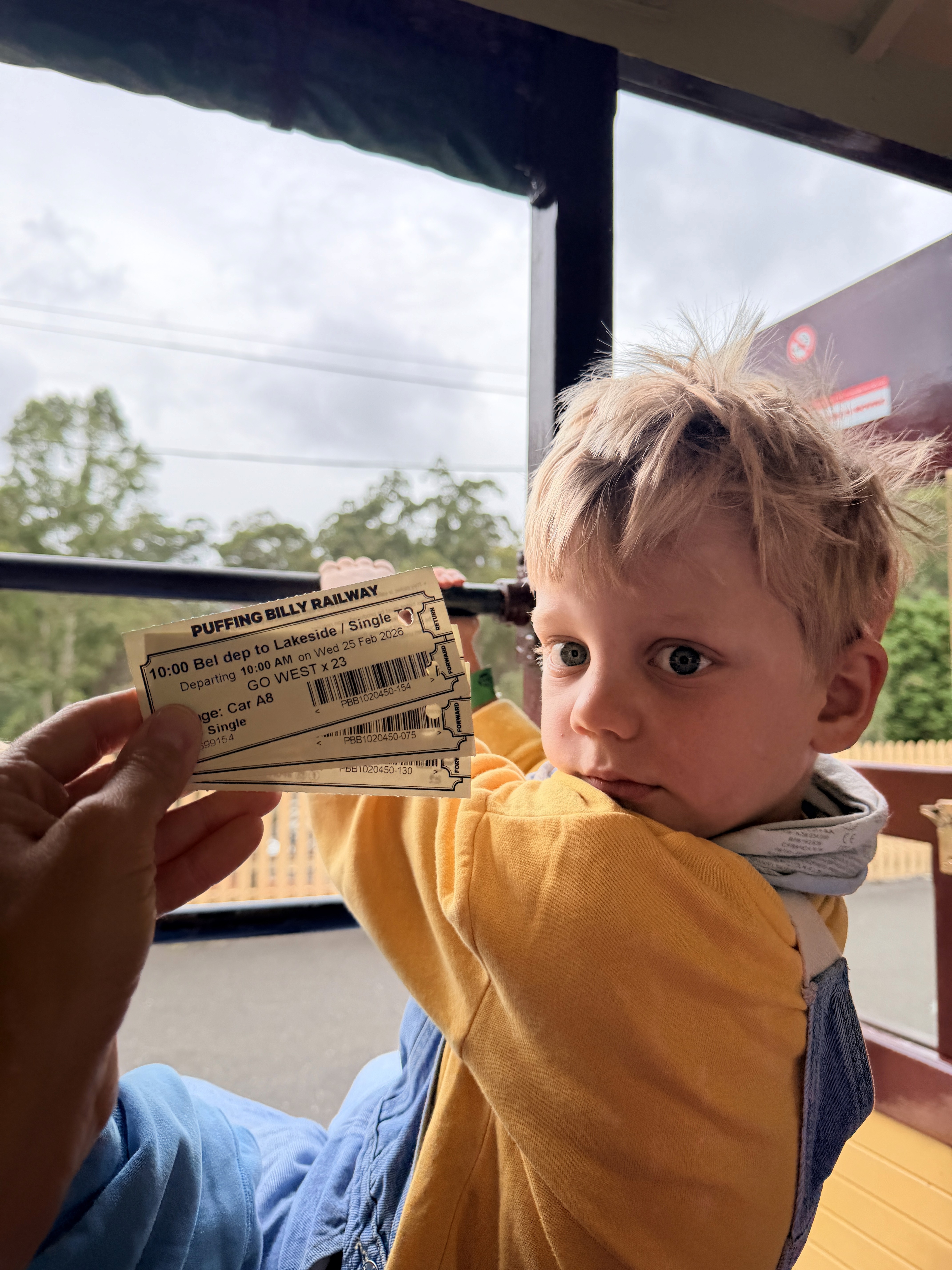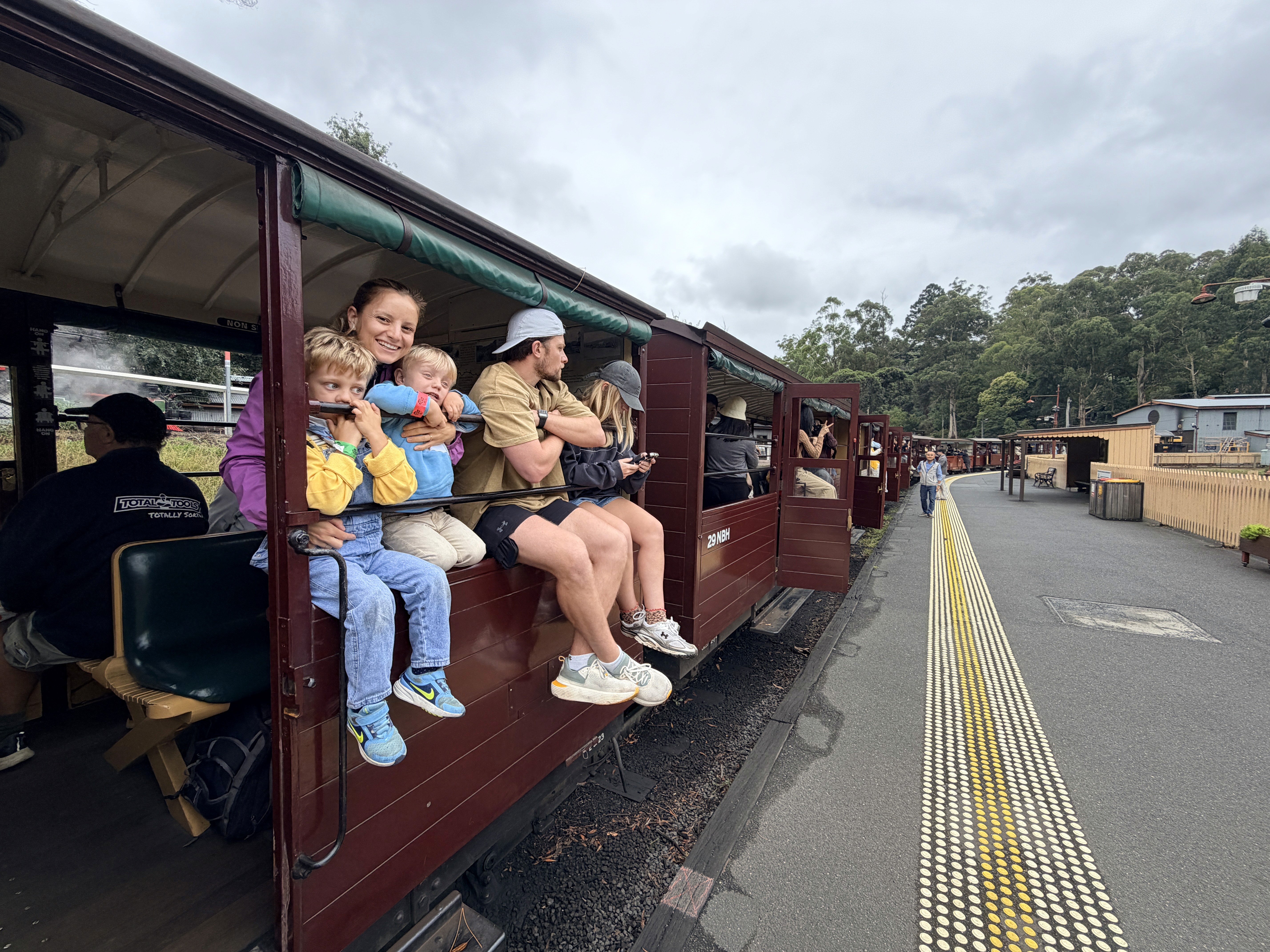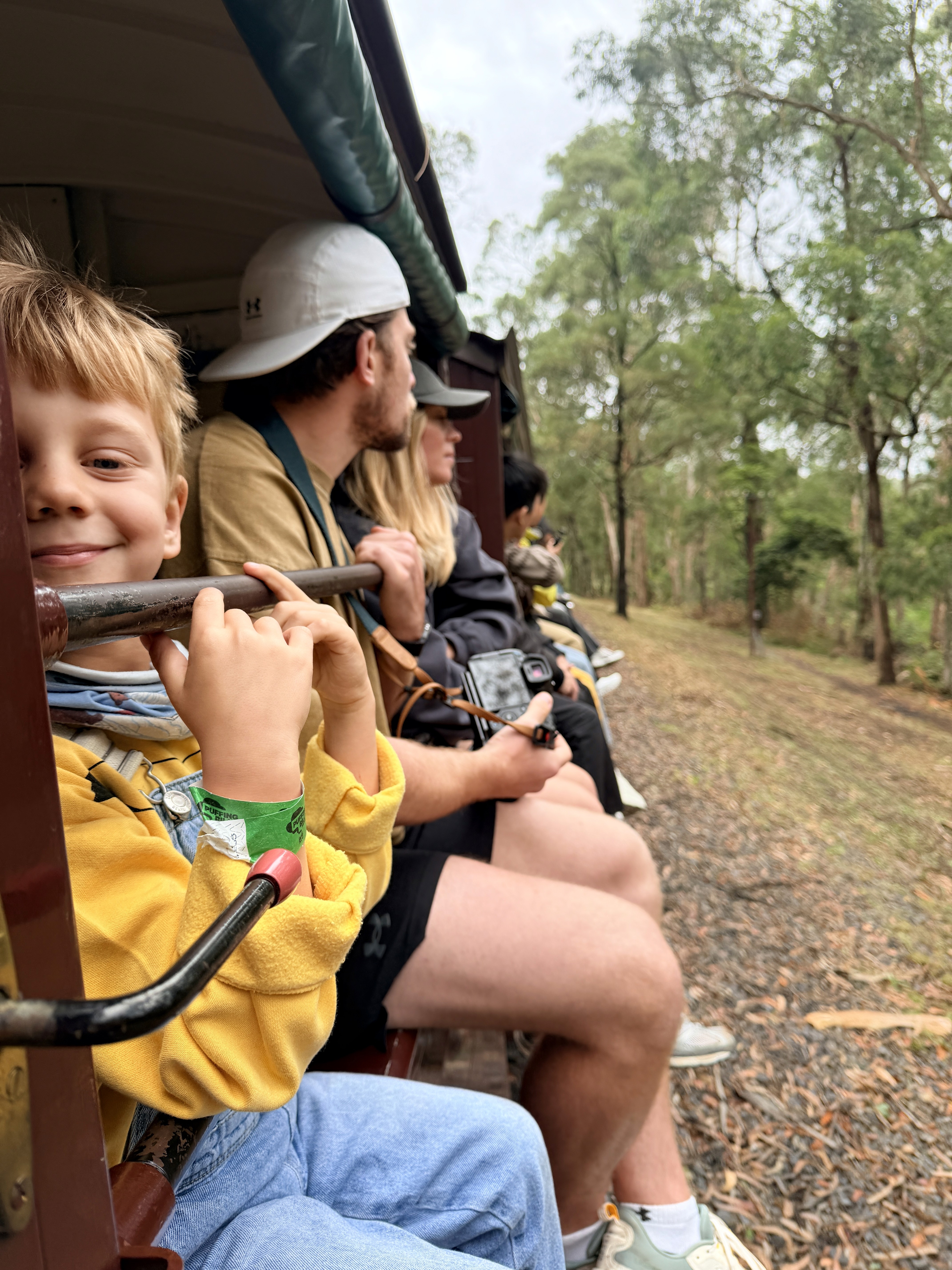 Il giorno dopo siamo saliti sul Puffing Billy, storico treno a vapore. Ponte di legno di 127 anni, curve scenografiche, persone sedute con le gambe fuori dal finestrino. Pioveva leggermente e faceva freddo, ma era bellissimo.