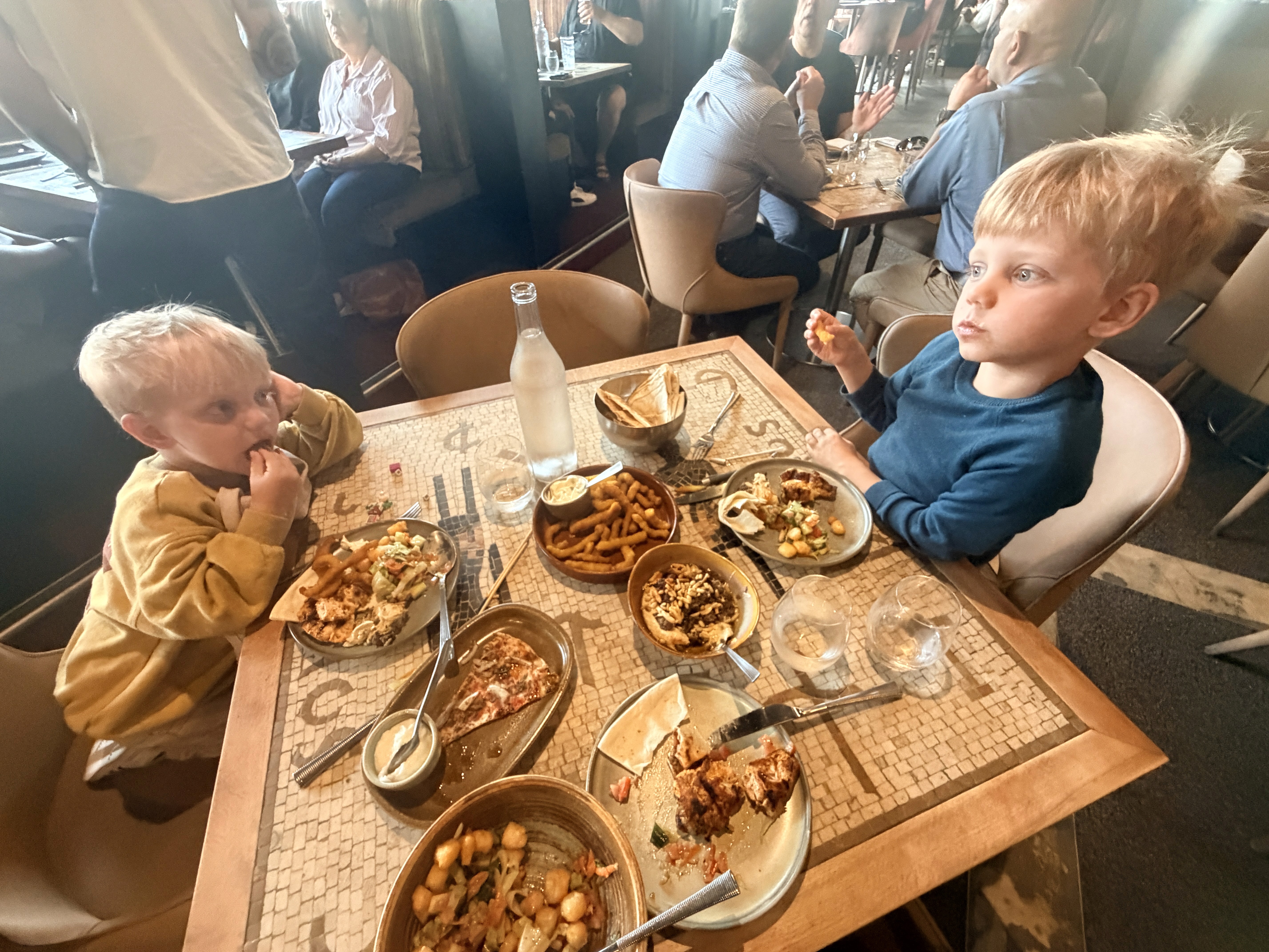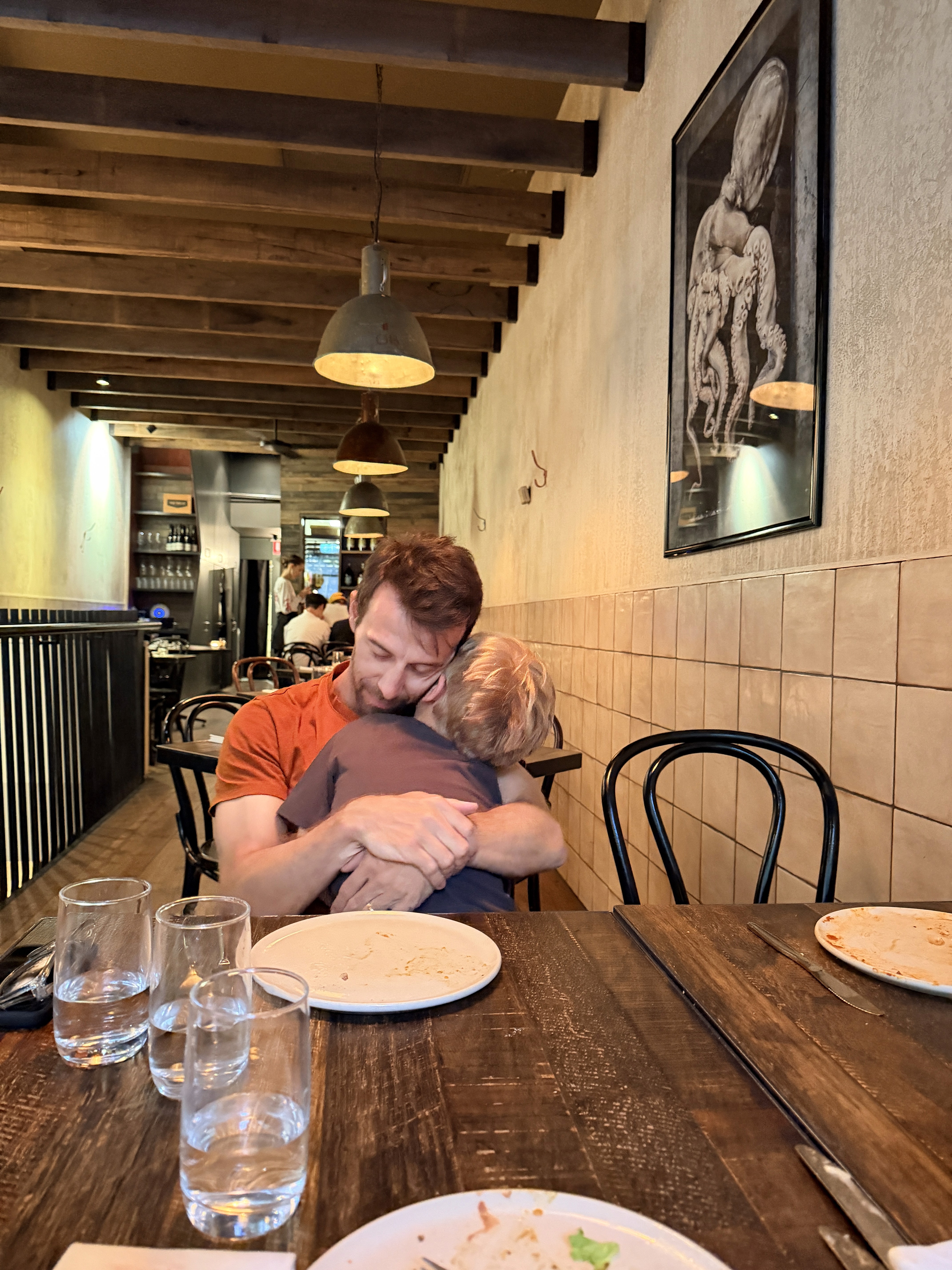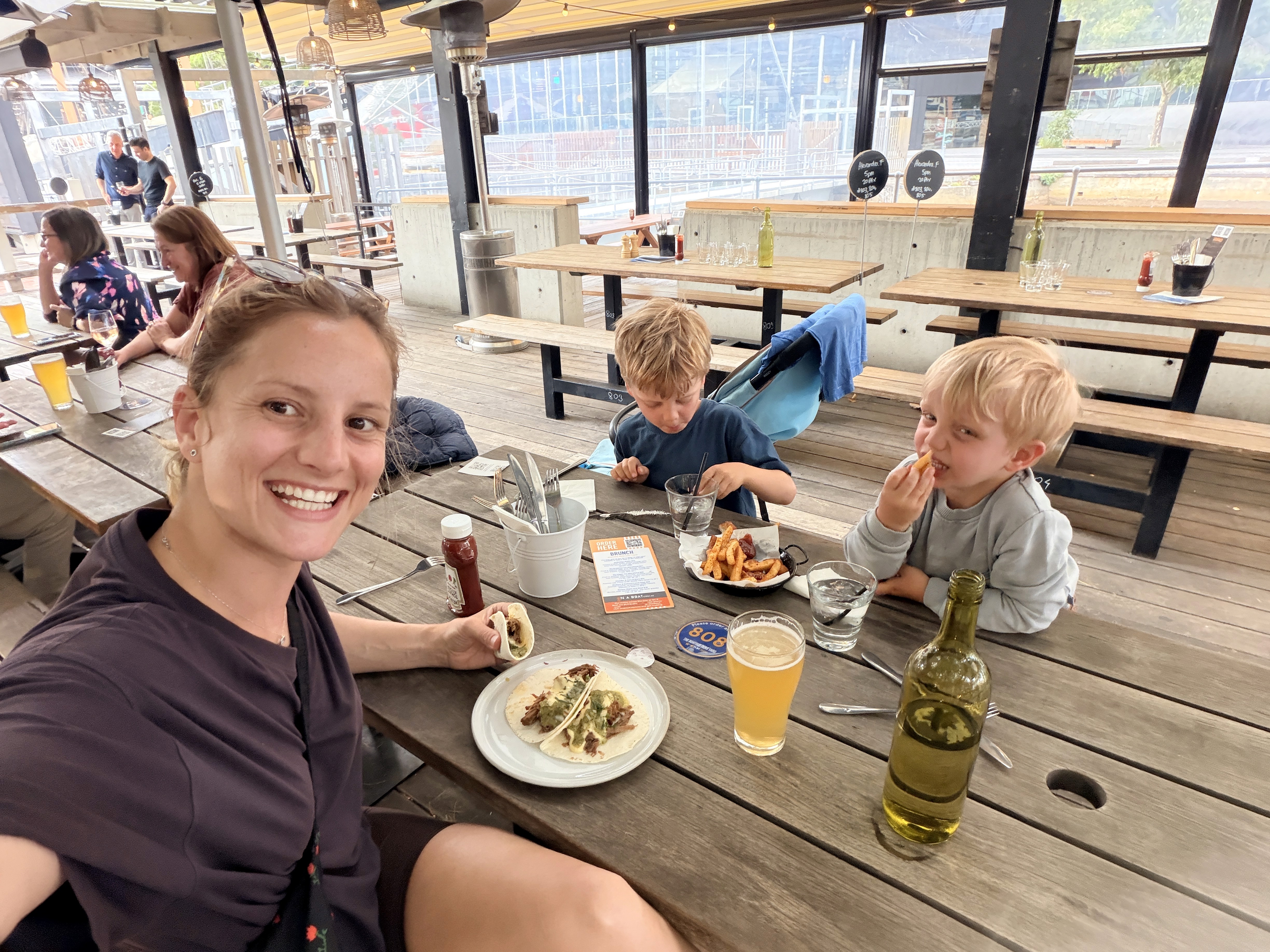 La prima sera ho cenato da sola con i bambini al Boatbuilders sul fiume. È stato un momento inaspettatamente romantico. Quando siamo solo noi tre, loro si prendono cura di me con una dolcezza che mi sorprende sempre.