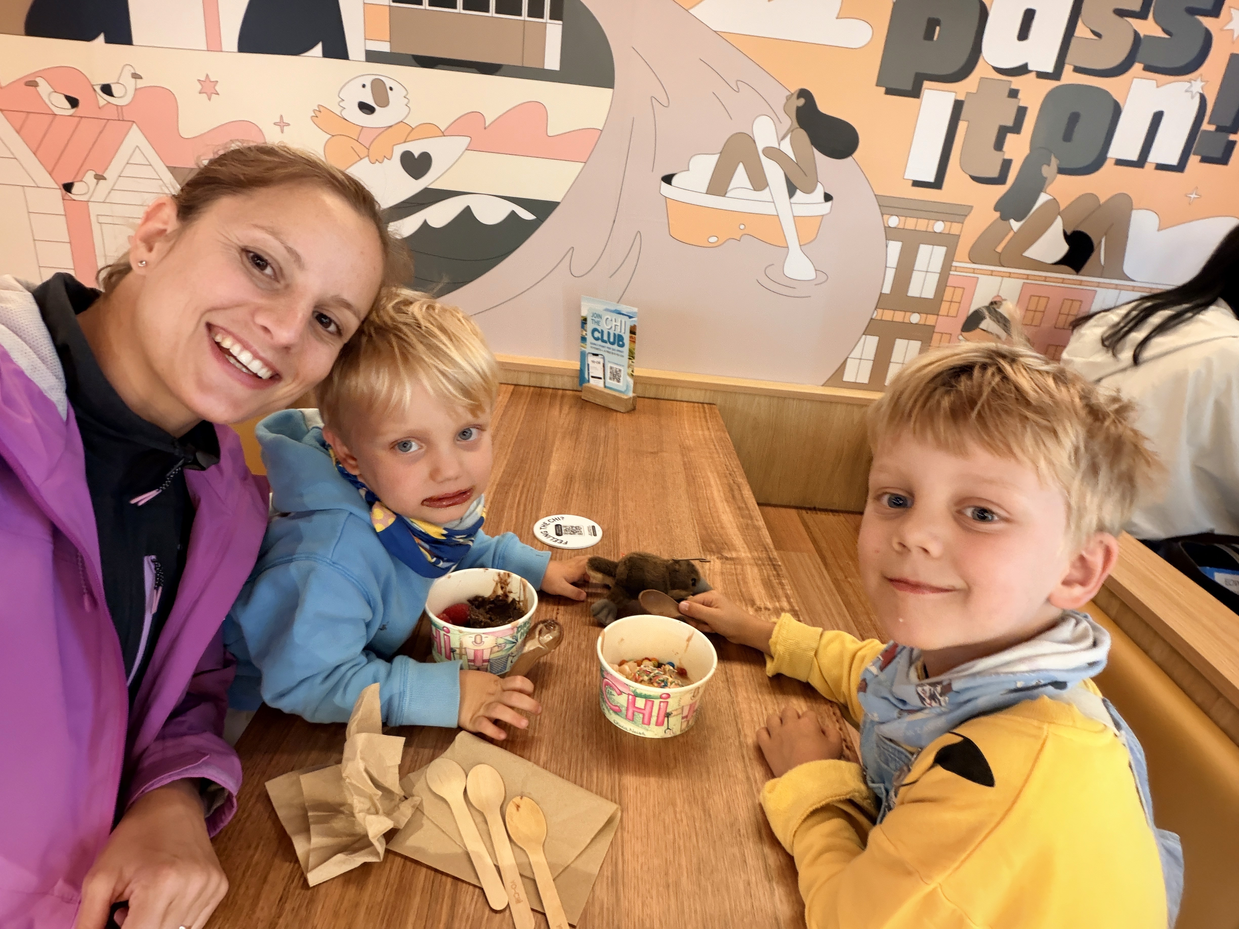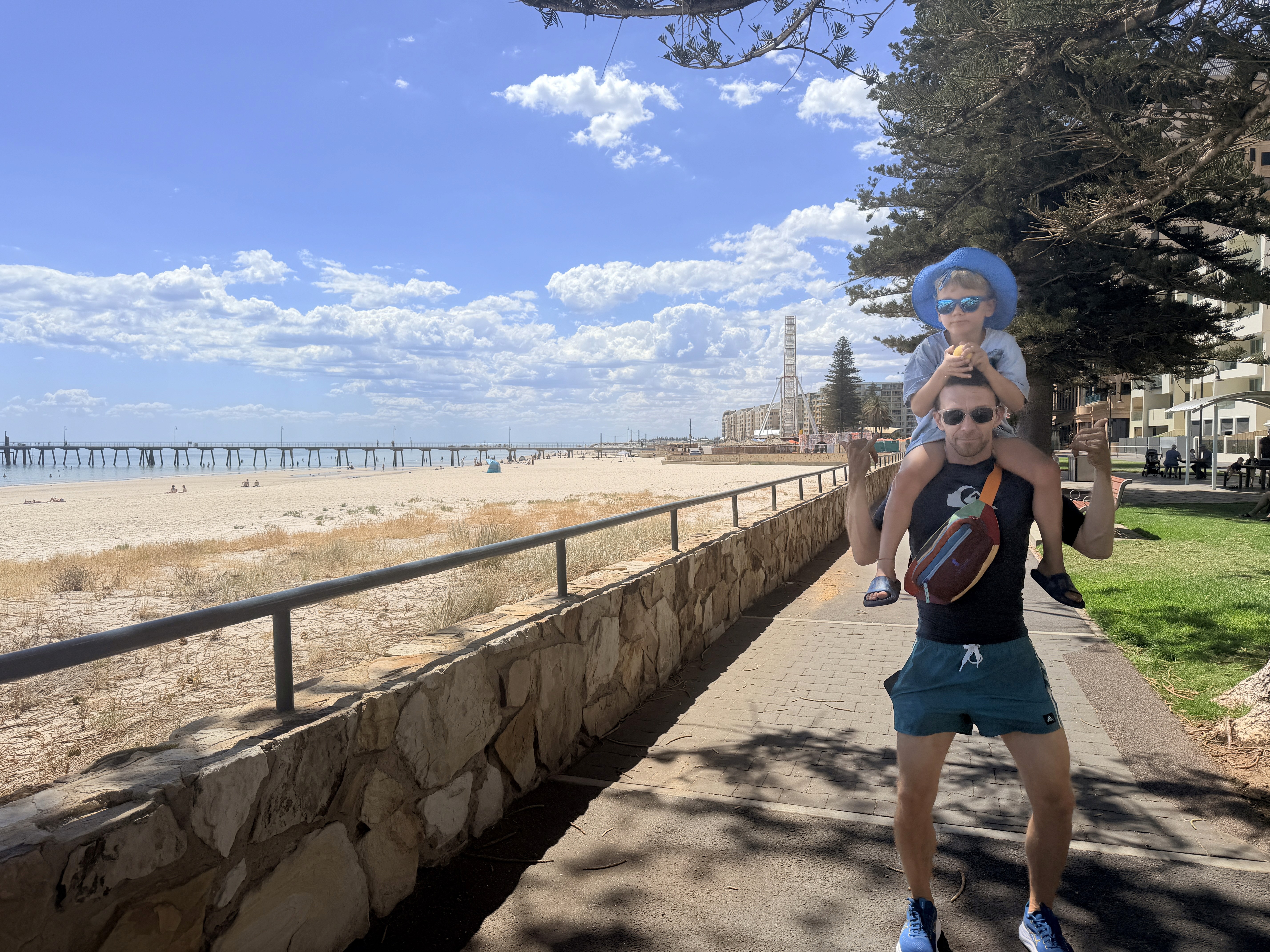 Il giorno dopo siamo stati a Glenelg. Ai bambini è piaciuta l’acqua bassa, ma a noi non ha lasciato un ricordo forte. Abbiamo preso la giornata con calma: brunch lento, passeggiata in città e pranzo al parco durante il Fringe Festival.