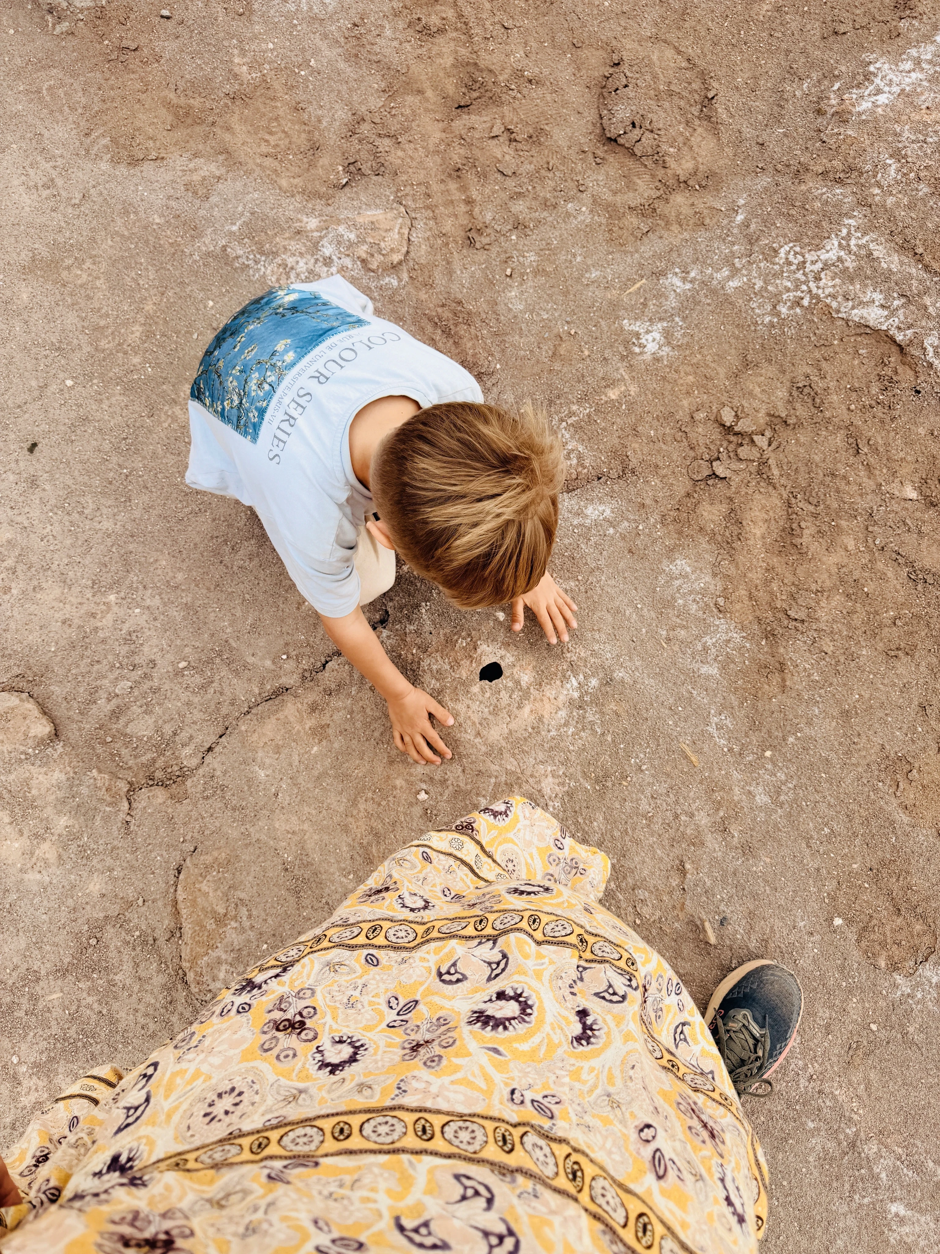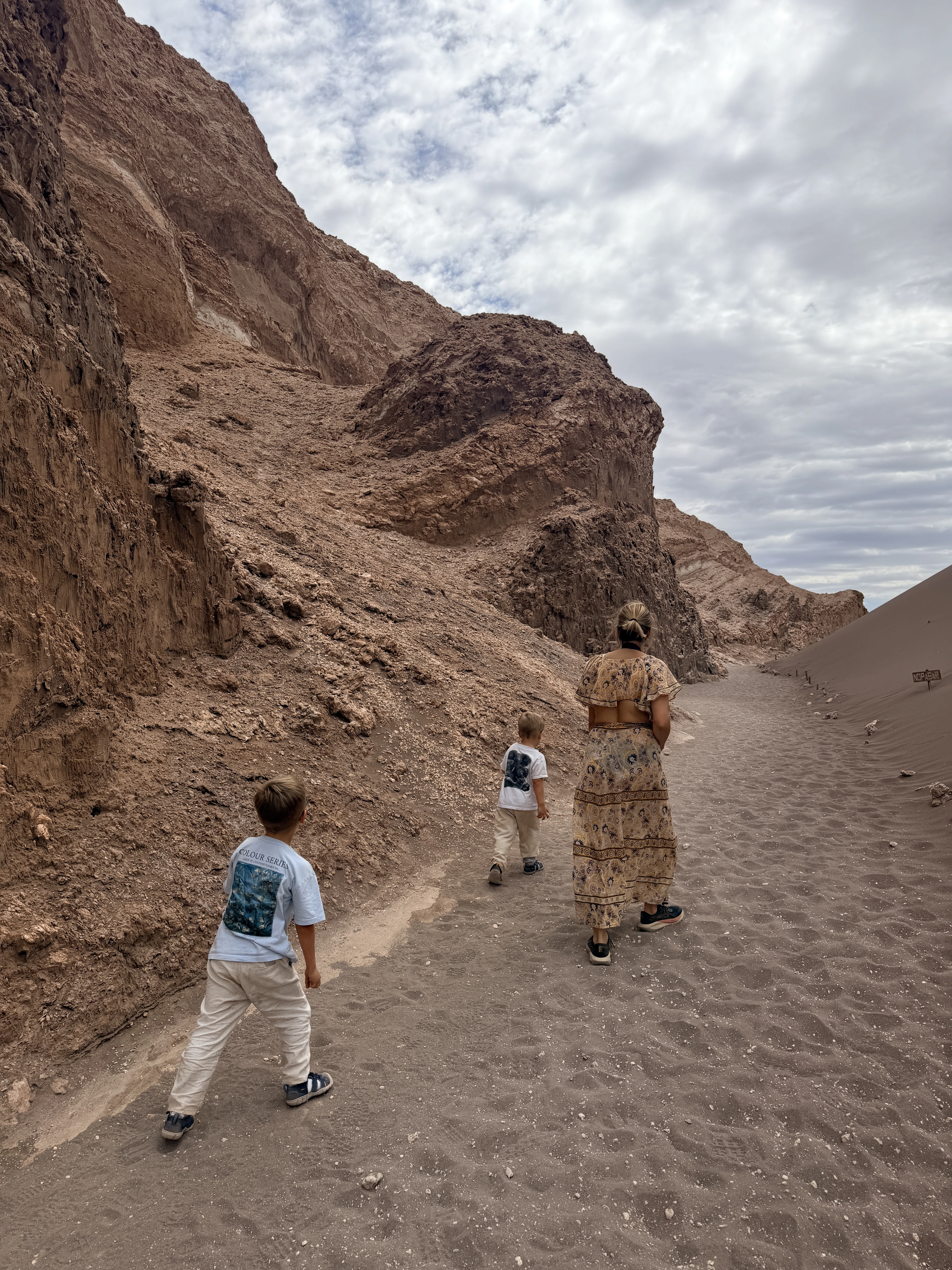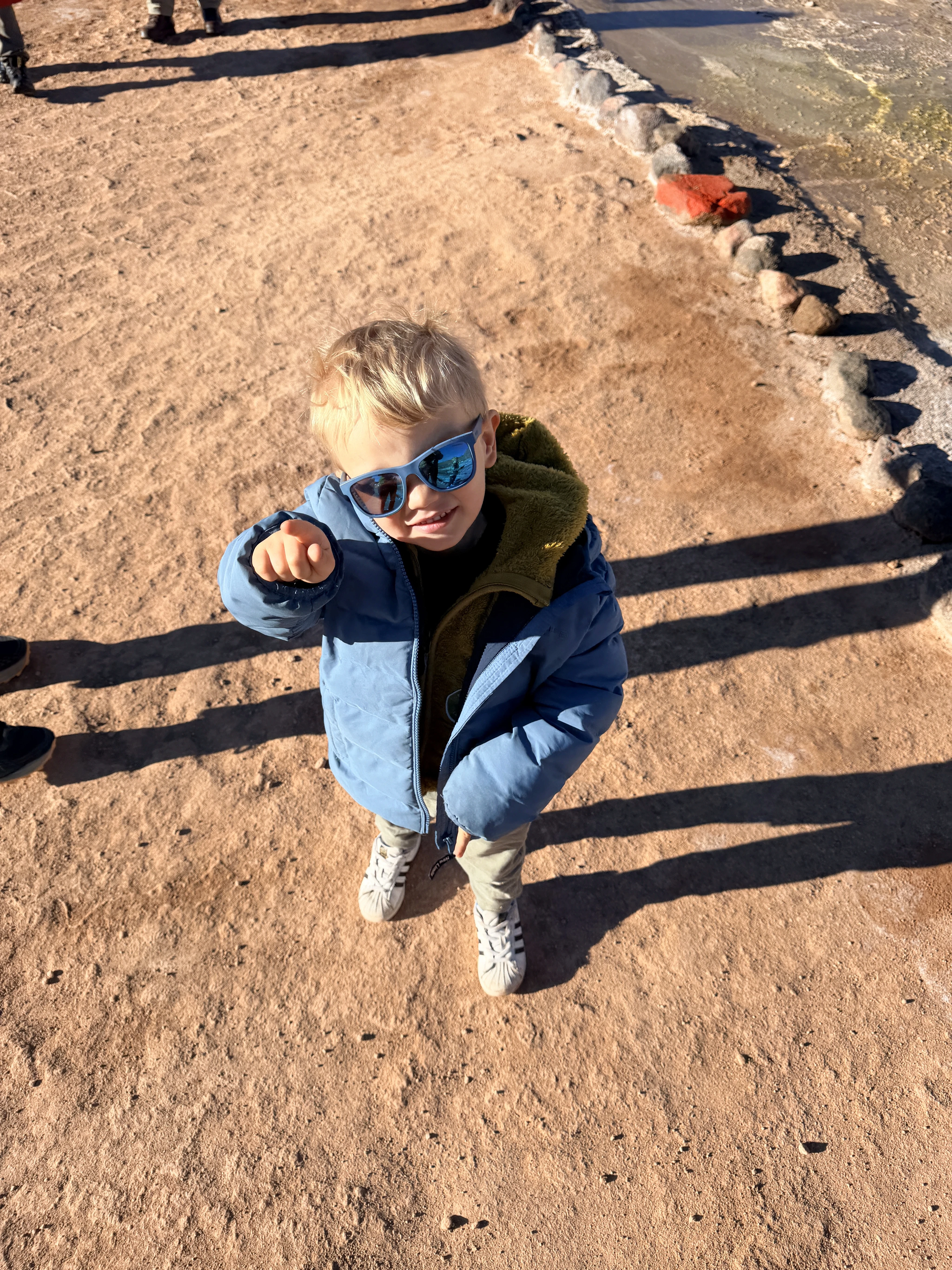 L’acqua è così salina che ti morde la pelle. I bimbi potevano fare solo un tuffo veloce. Axel si è anche toccato gli occhi e gli bruciavano tantissimo. Il vento era fortissimo e la passeggiata nel deserto sotto il sole cocente, con la sabbia negli occhi, è stata lunga. Poi la coda per la doccia, i costumi rovinati dal sale… no grazie.