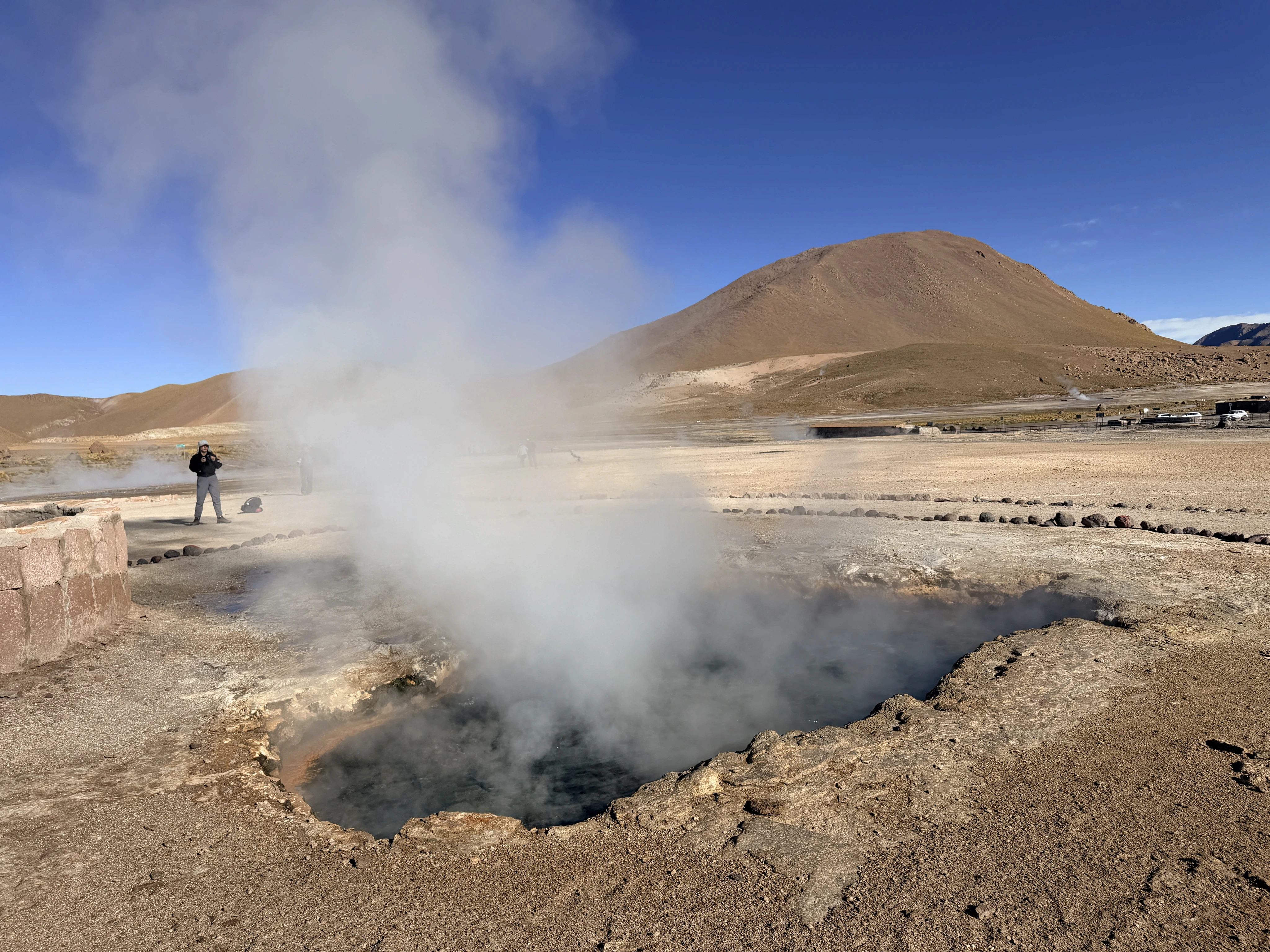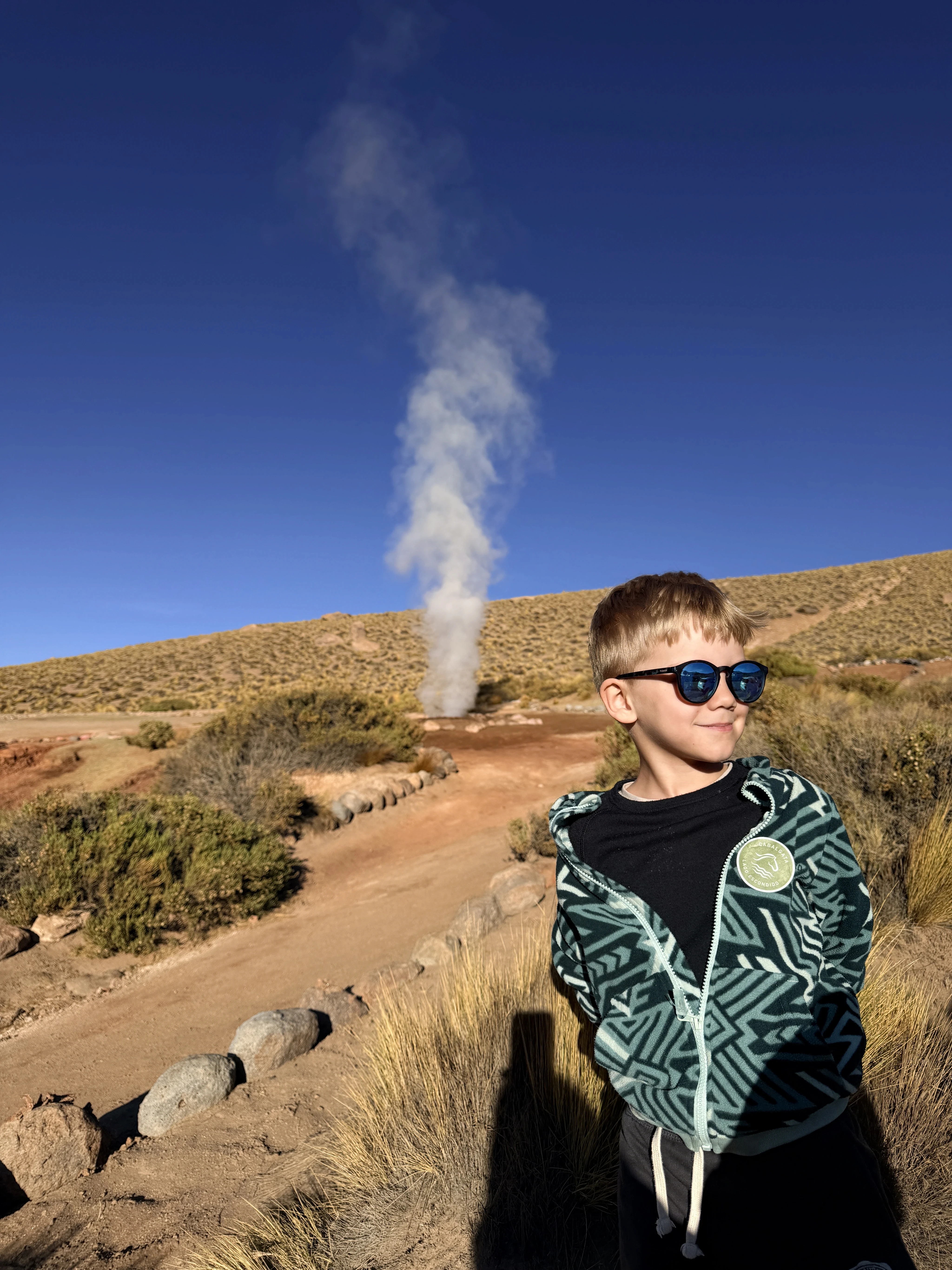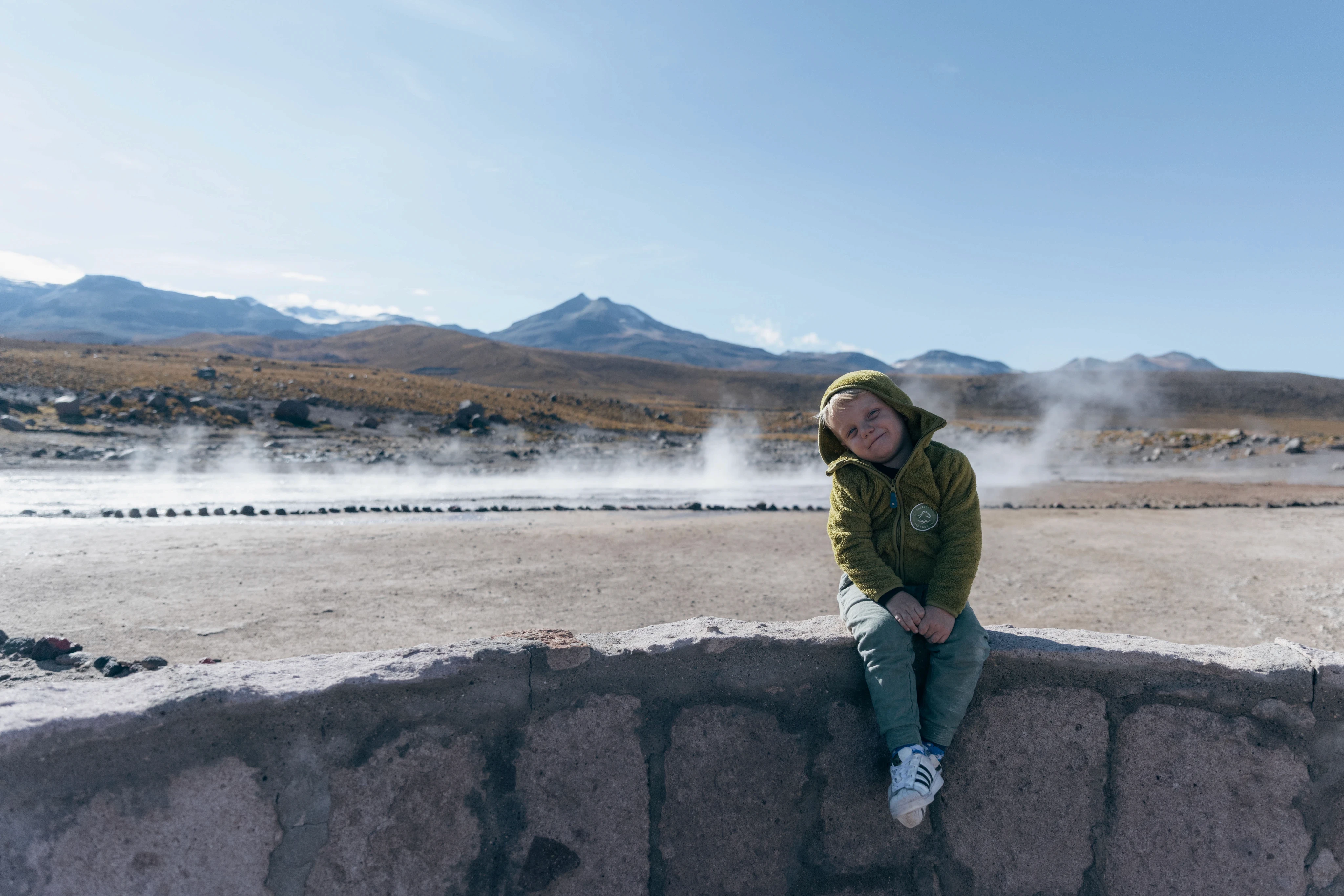 Pochi minuti dopo arriviamo e vediamo il vapore uscire dalla montagna. Arrivati su, sorprendentemente non patiamo troppo l’altitudine dei 4.300 metri. Ari però non vuole camminare, vuole solo stare in braccio.