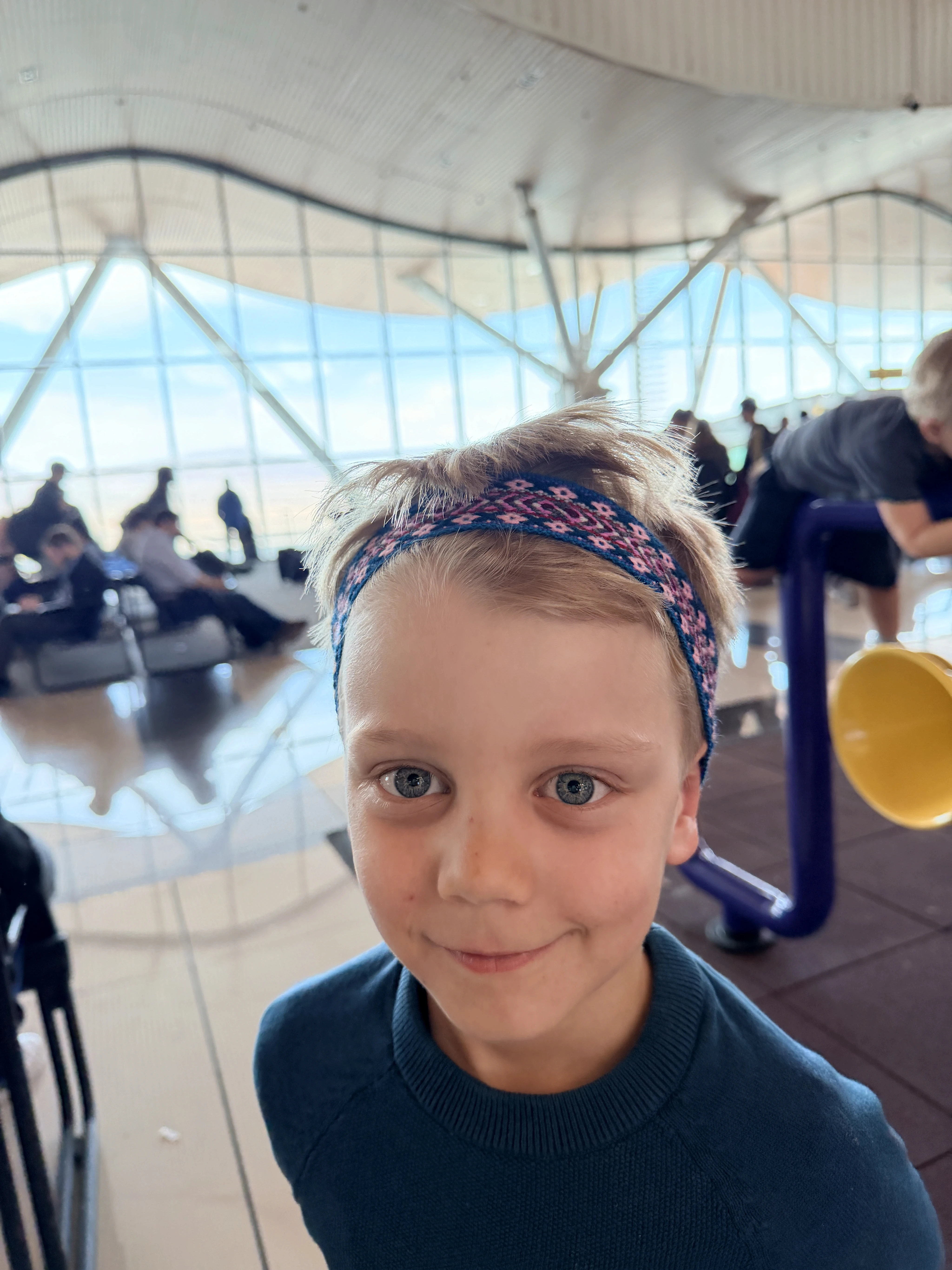 A un certo punto diamo il succo ai bimbi con la cannuccia. Ari lo beve un po’ e poi ci allarma dicendo che non riesce a respirare. Mancavano circa dieci minuti all’arrivo e per un attimo non sapevamo se tornare indietro.