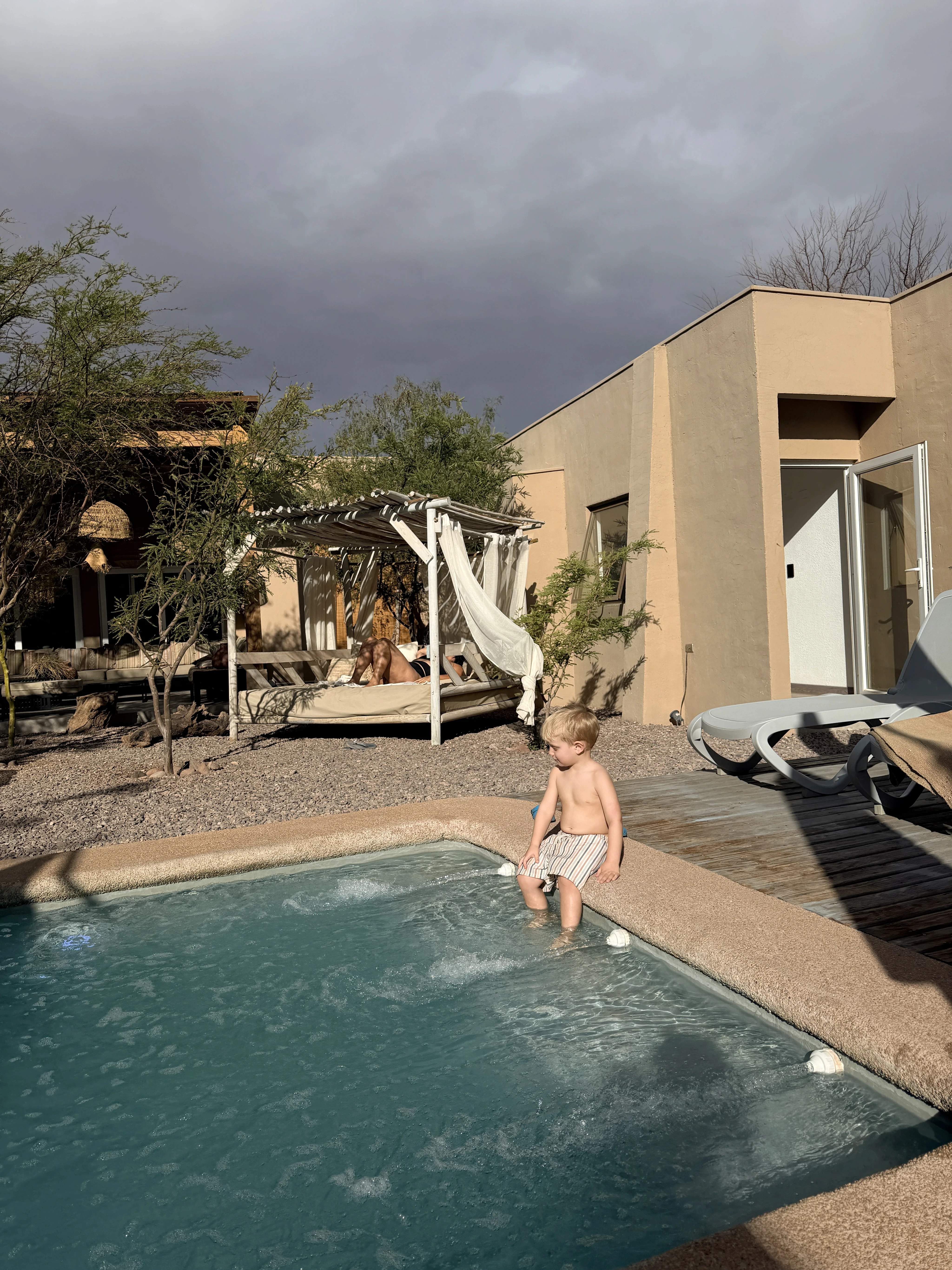 I bimbi invece, dopo un riposino, si riprendono subito e sono prontissimi per nuovi tuffi in piscina. Penso che questa sarà la parte del viaggio che mi rimarrà più impressa. Ci sarebbero ancora tante cose da vedere, come le Piedras Rojas e le lagune altipianiche, ma abbiamo deciso di prenderci una giornata di relax per i bimbi. Forse le vedremo la prossima volta, quando torneremo da queste parti passando per la Bolivia.