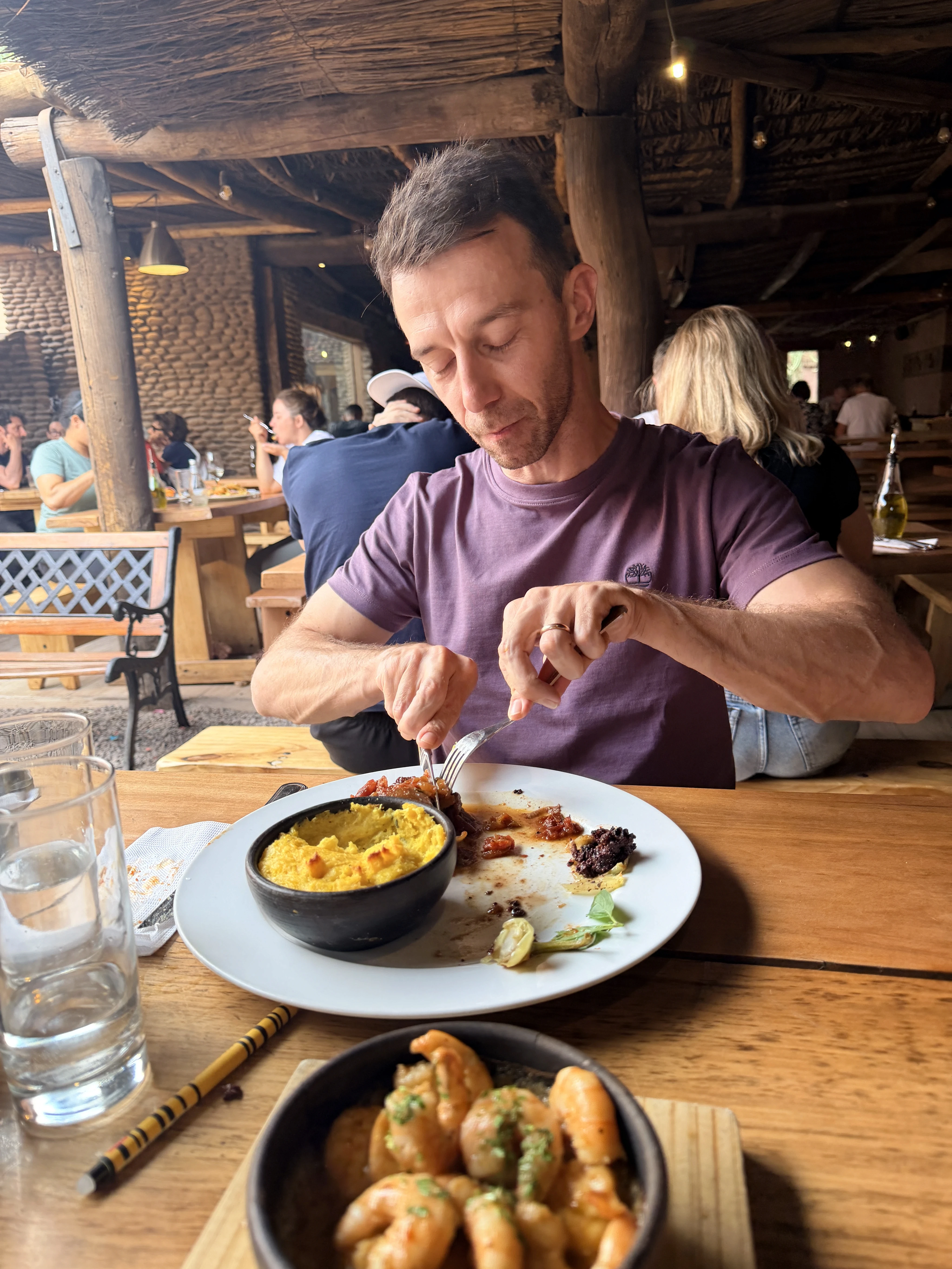 A cena abbiamo mangiato il pil pil di gamberetti in un ristorante in centro città. Sembravano gamberetti in una specie di bagna cauda piccante. Davvero super. Il ristorante di San Pedro si chiama Abode, con influenze peruviane. Davvero eccellente.