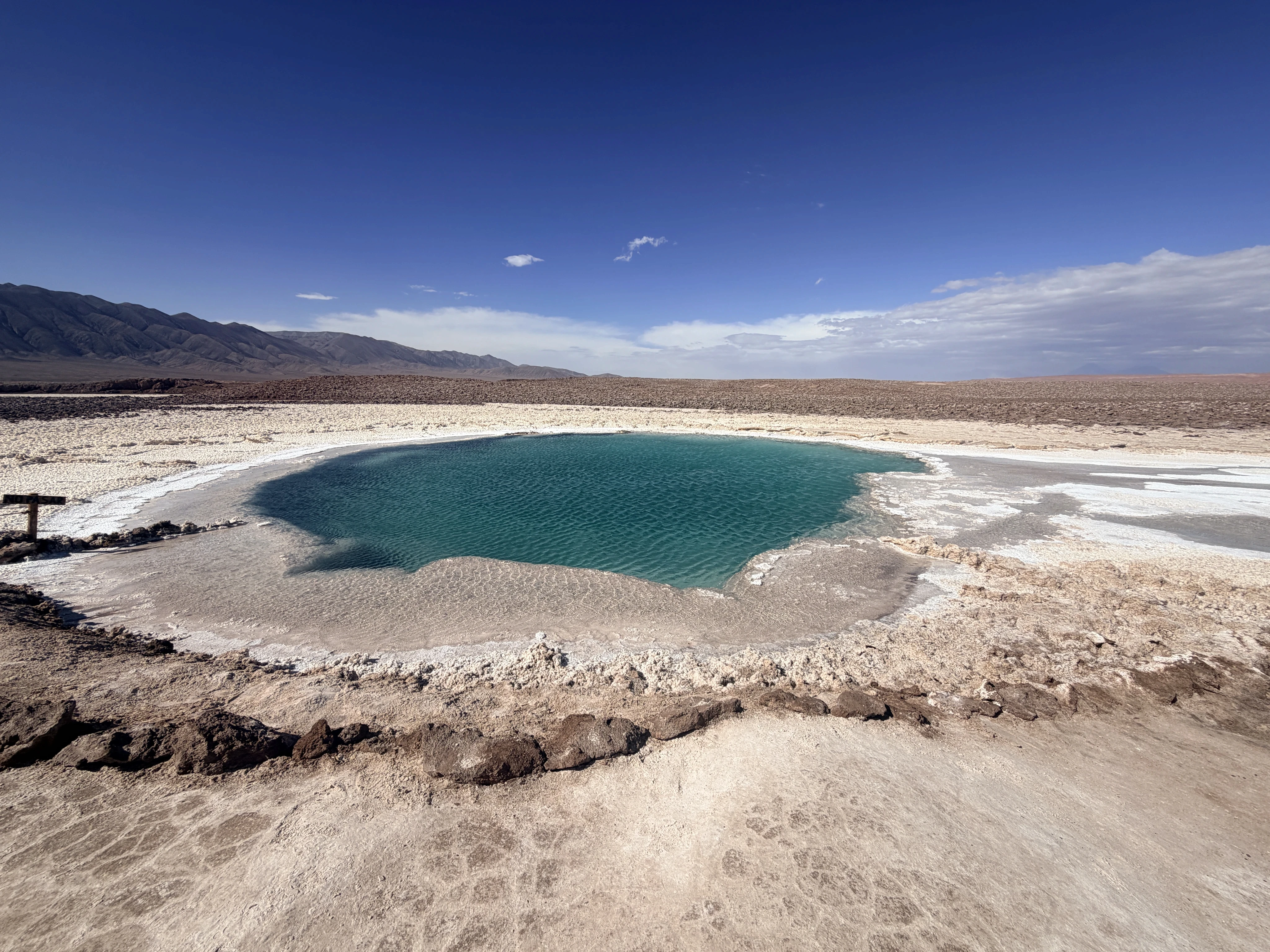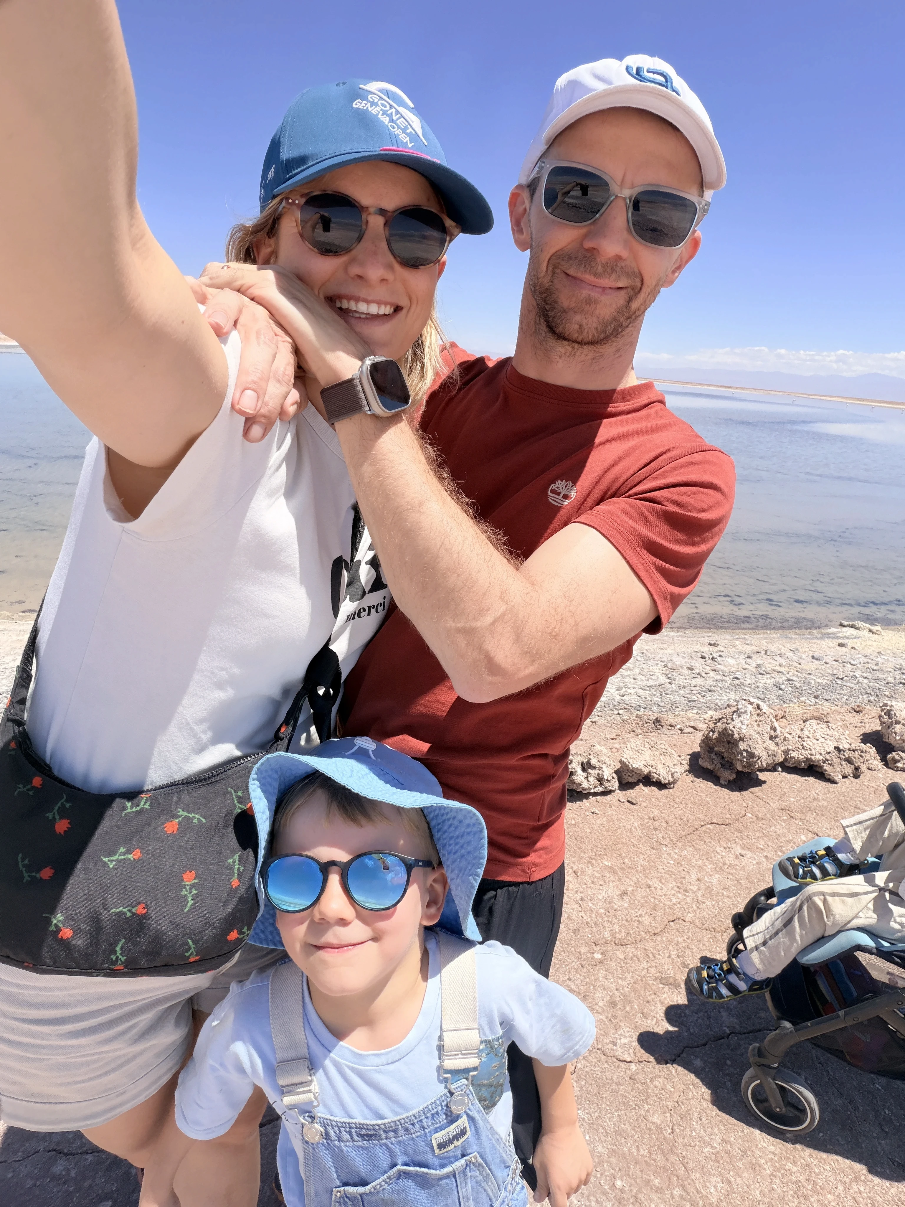 Laguna Chaxa, dove abbiamo osservato tre tipi diversi di fenicotteri. Abbiamo anche sbagliato strada per arrivarci. Possiamo dire che ci siamo persi nel deserto? Stavamo quasi finendo in una miniera di sale 🤣