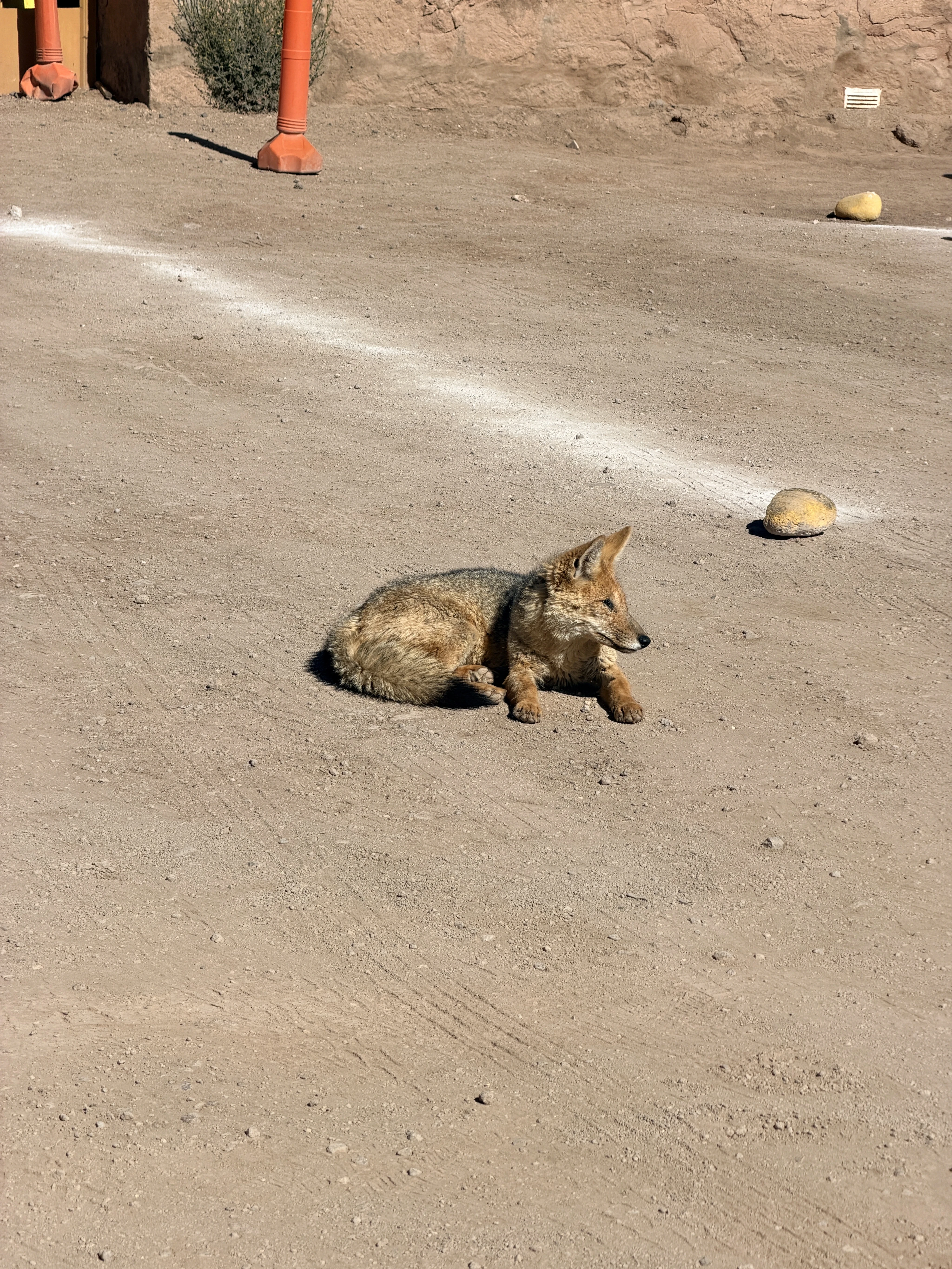 Sulla via del ritorno incontriamo tantissimi animali: volpi, lama, vicuñe (che sono una specie di lama imparentata con i cammelli), greggi di capre e ovviamente fenicotteri. Vediamo anche cactus enormi, alti fino a tre metri, che crescono imponenti sulla cima delle montagne. Vulcani che si specchiano negli stagni. Penso che l’escursione a El Tatio mi sia piaciuta ancora di più della Valle della Luna.