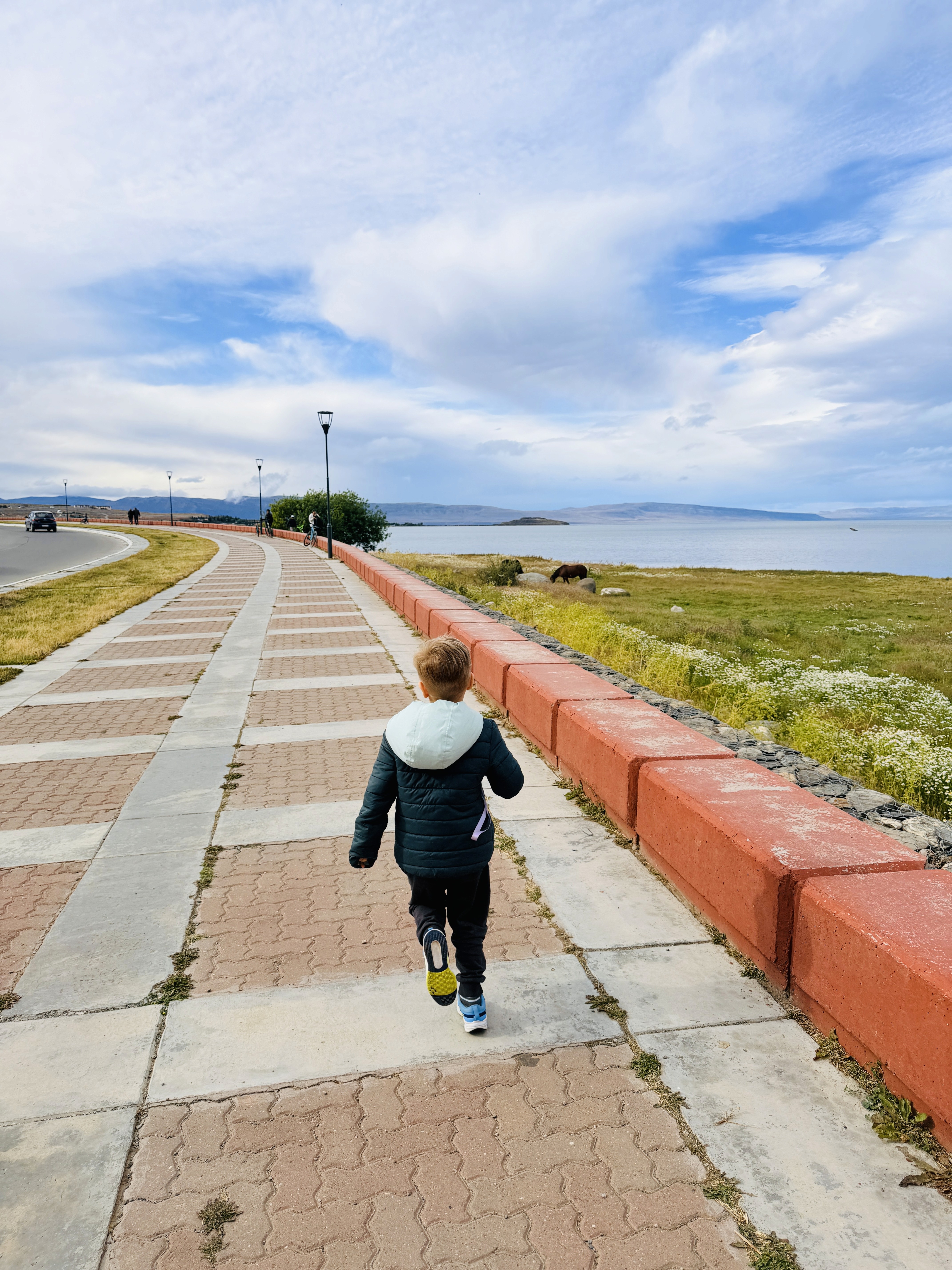 Un vento glaciale, costante, feroce. Dai 70 ai 90 km/h, abbastanza forte da portare via i bambini se saltano abbastanza in alto. Lo abbiamo capito bene quando Axel si è messo in piedi su una pietra accanto al Lago Argentino. Il vento ha iniziato a trascinarlo via e lui, d’istinto, si è accovacciato. Come se il corpo avesse capito prima della testa che qui bisogna stare bassi.