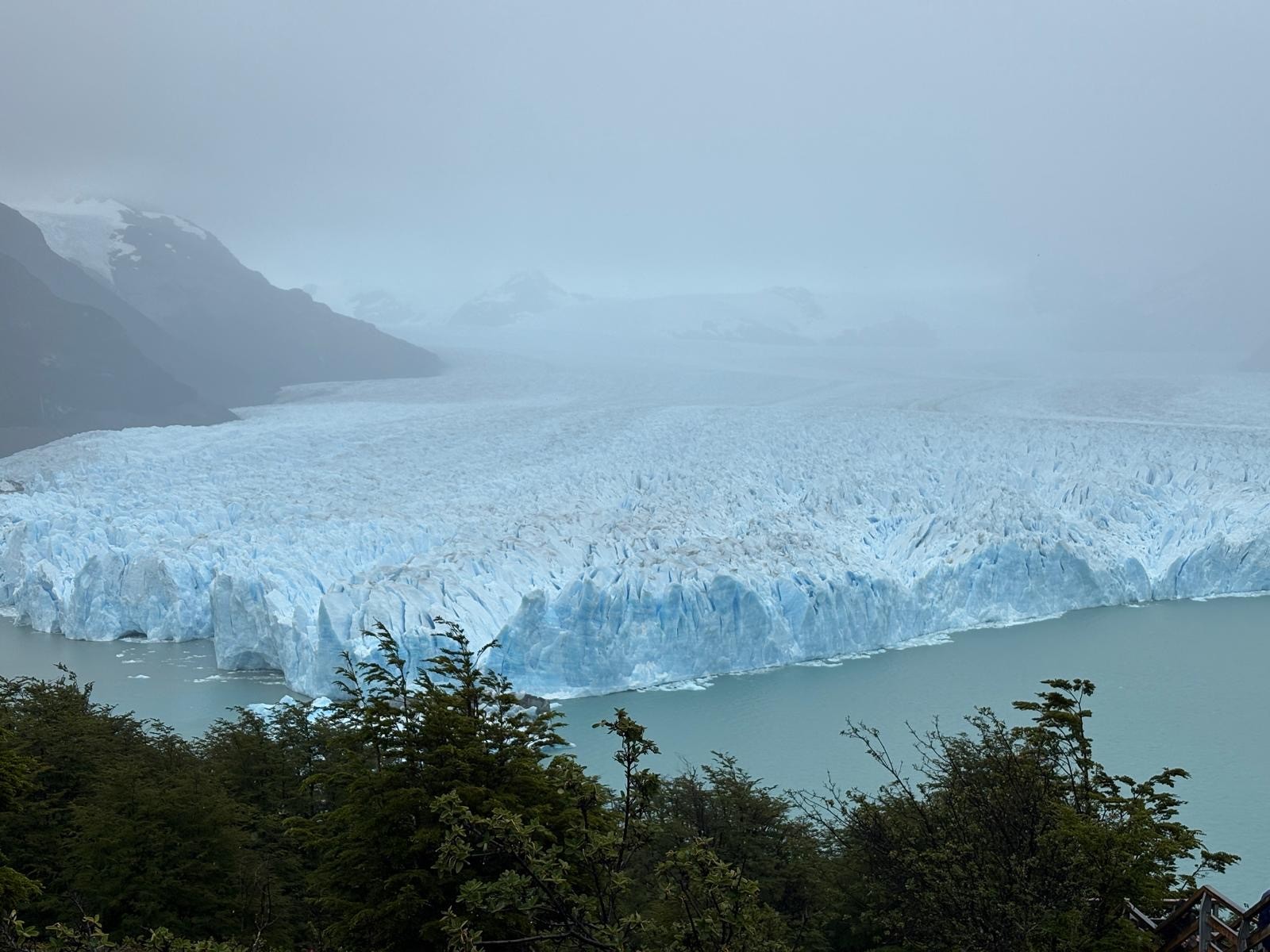Mi aspettavo di atterrare su distese verdi, quelle che immagini quando pensi alla Patagonia, e invece no: la terra era color Siena bruciata, secca, quasi marziana. E poi il Lago Argentino. Di un turchese intenso, vivido saturo. Talmente saturo da sembrare finto. Solo dopo ho scoperto che quella particolare tonalità di blu è dovuta alle cosiddette “farine di ghiaccio”: minuscole particelle rilasciate da un antico ghiacciaio delle Ande che, sciogliendosi, colora l’acqua in questo modo ipnotico. Il lago è immenso.