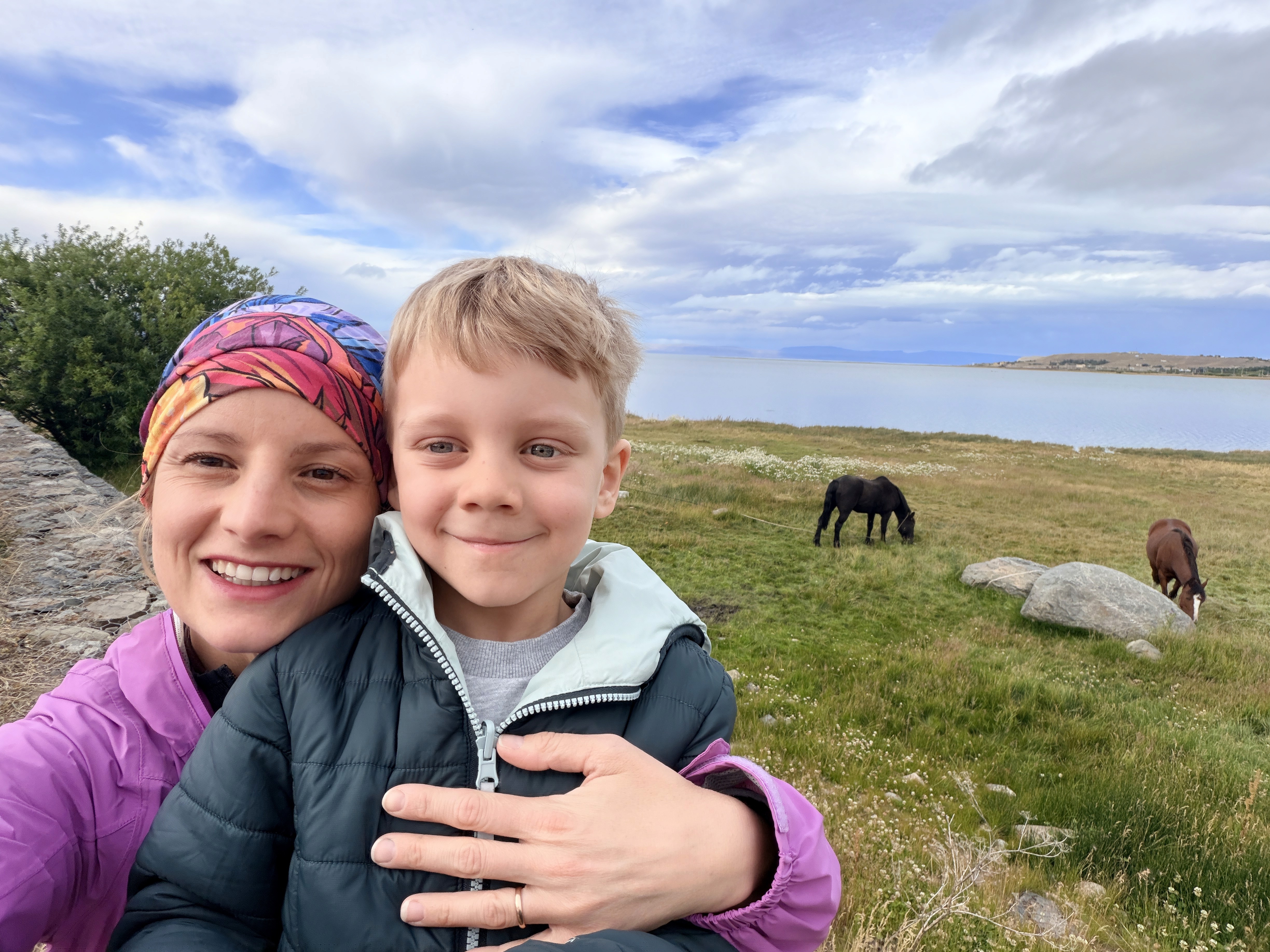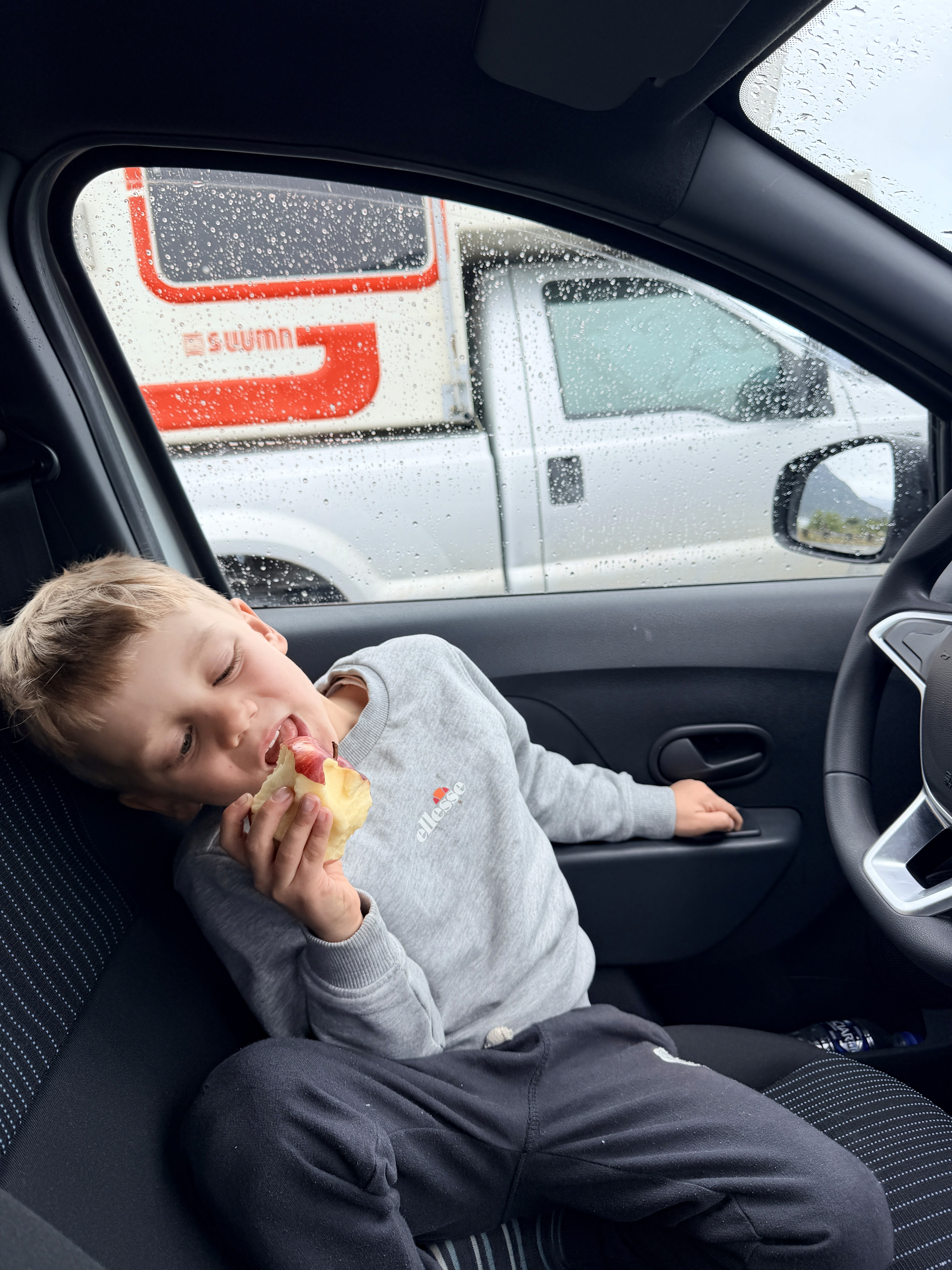 Abbiamo visto piccoli blocchi staccarsi e crollare. In lontananza però era tutto piuttosto nebbioso e non siamo riusciti a percepire la grandiosità del ghiacciaio nella sua interezza. Axel, come sempre, adorava esplorare e seguire il percorso. Ari invece, che non è mai freddoloso, sembrava perfettamente a suo agio: era l’unico con le manine ancora calde a fine giro.