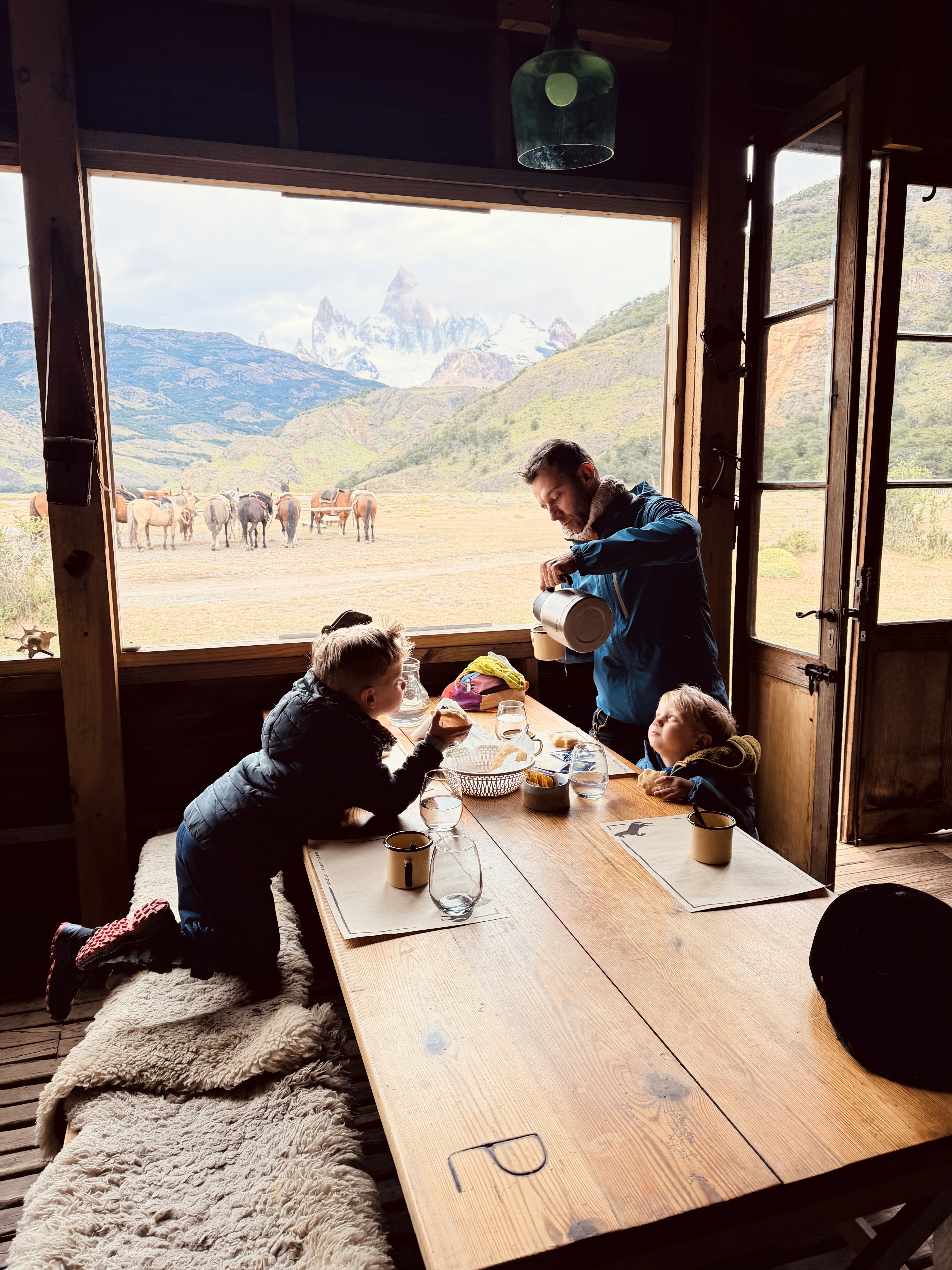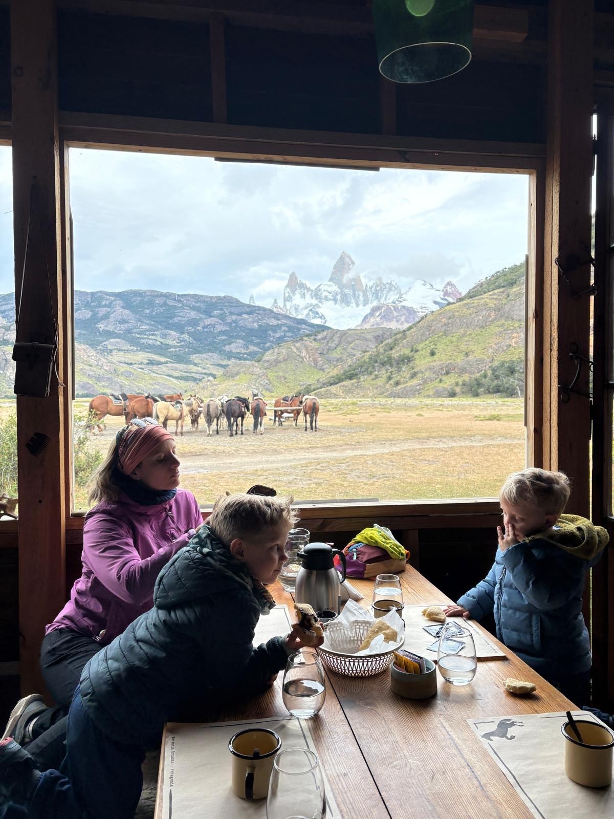 Sarei rimasta lì per ore. Le finestrone in legno facevano da cornice al dipinto del Fitz Roy di fronte a noi. Ma abbiamo solo 15 minuti. Poi si riparte.