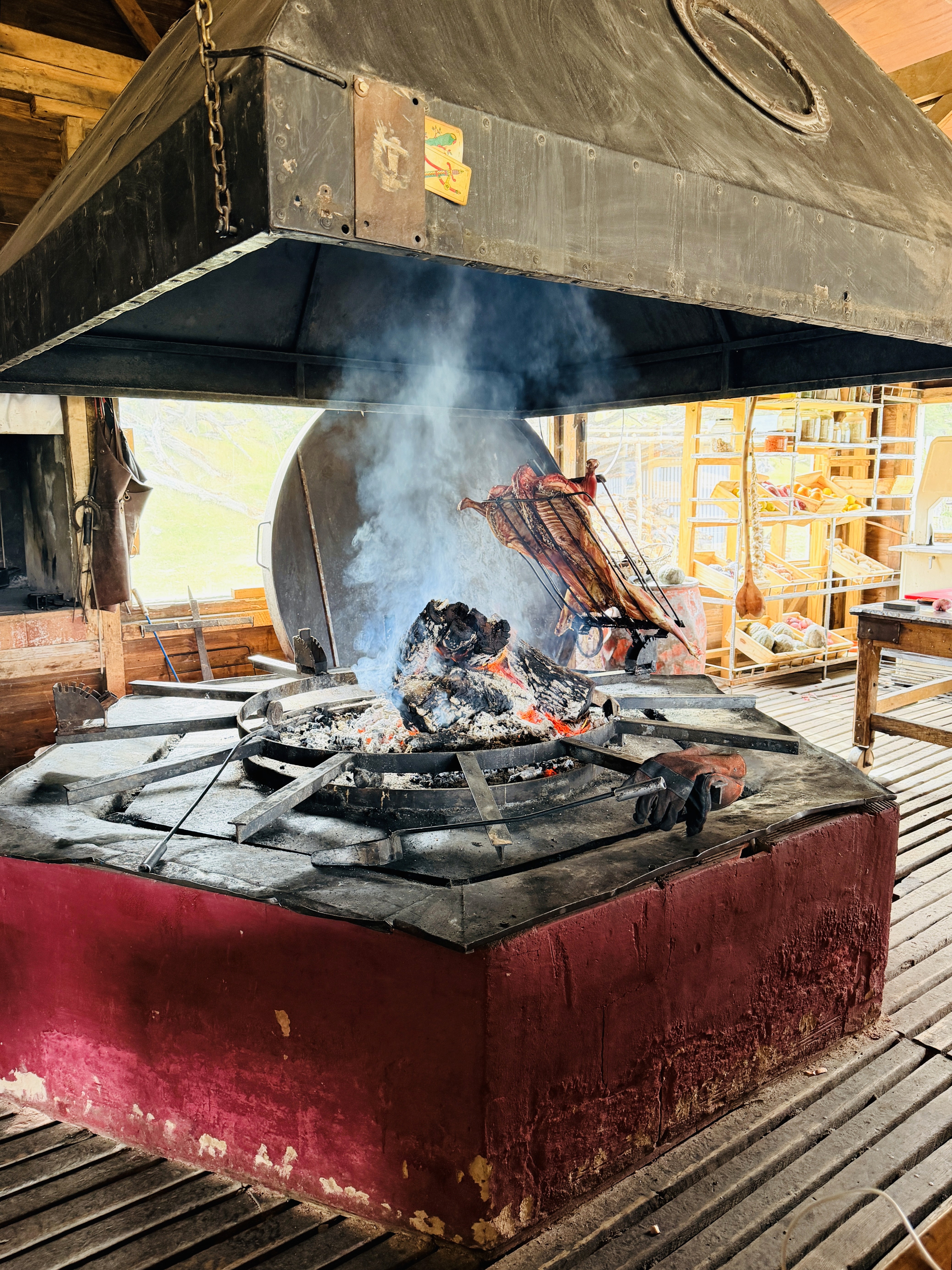 Scendiamo, leghiamo i cavalli e arriviamo in uno spazio tutto per noi. Dietro, un piccolo ristorante nel mezzo della montagna. Dentro, un fuoco acceso con tronchi giganteschi. Sopra, il cordero che stanno preparando per il pranzo.