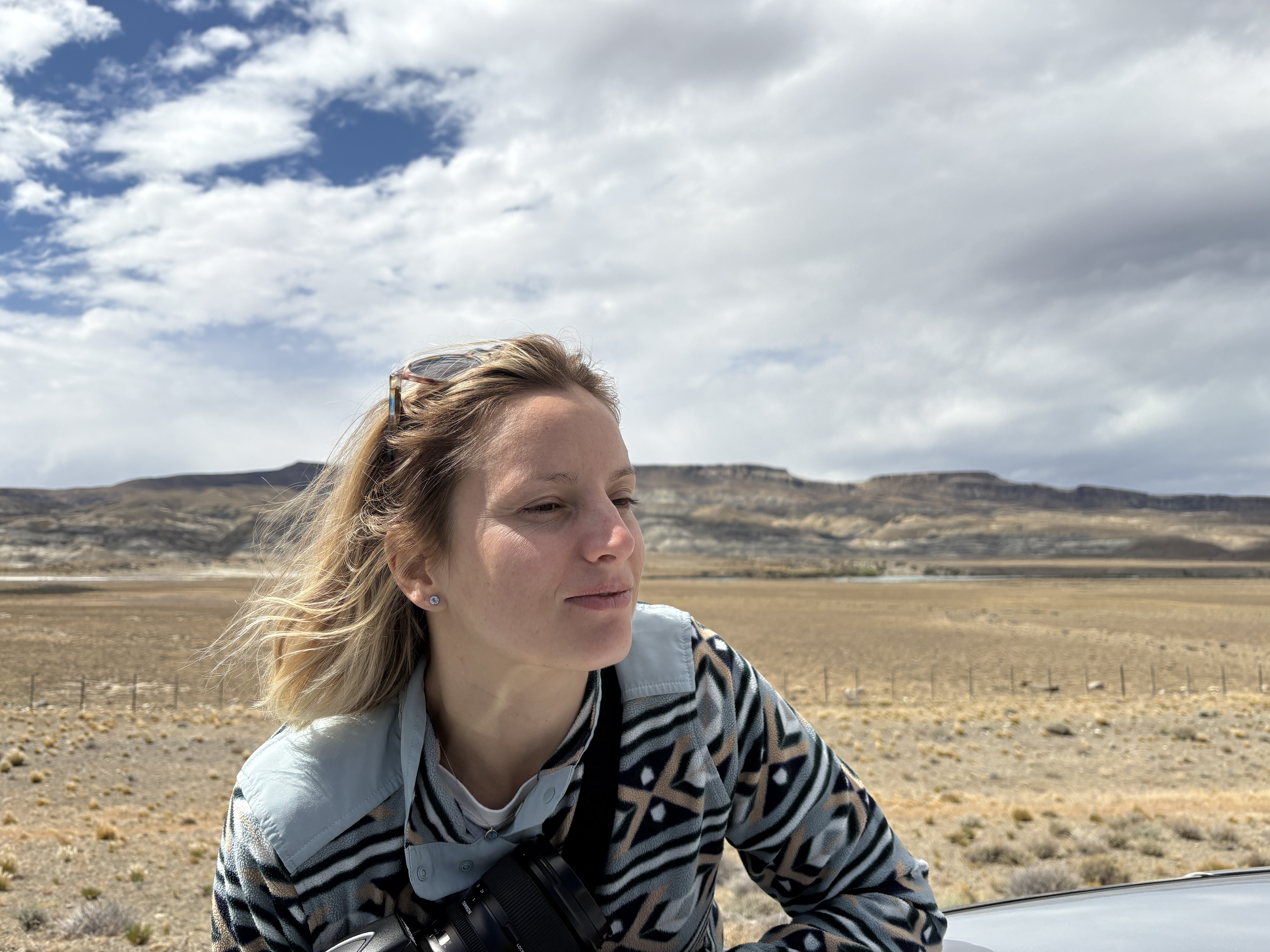 Dopo la cavalcata volevamo fare ancora una passeggiata. Io sognavo Laguna Capri o il Mirador del Cóndor, ma seguiamo i consigli dell’hotel. Arrivati a Piedras Blancas rinunciamo: il vento è troppo forte, siamo in mezzo a una distesa aperta, nel letto di un fiume. Non riesco nemmeno a sentire la voce di Paolo che mi parla accanto a me.