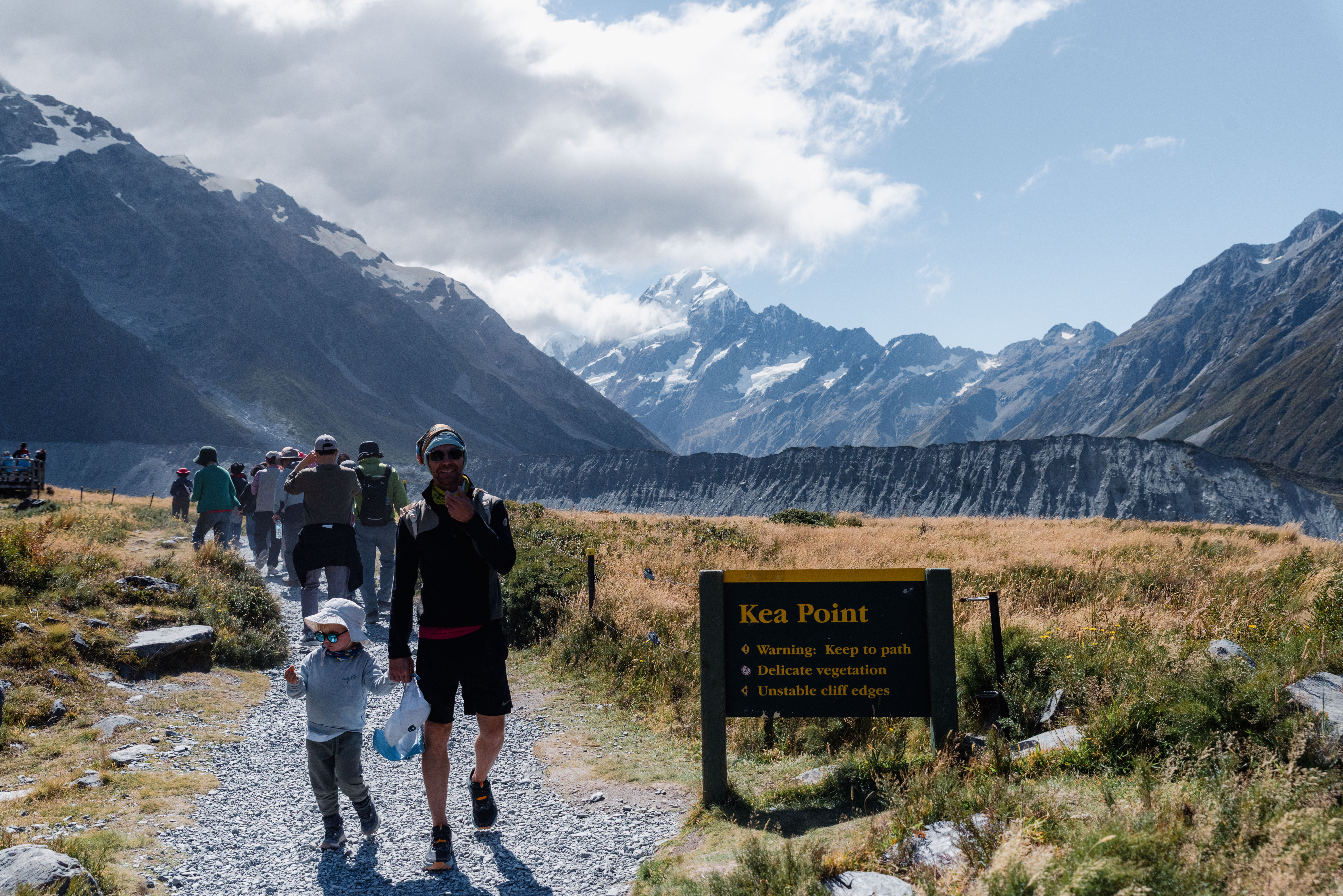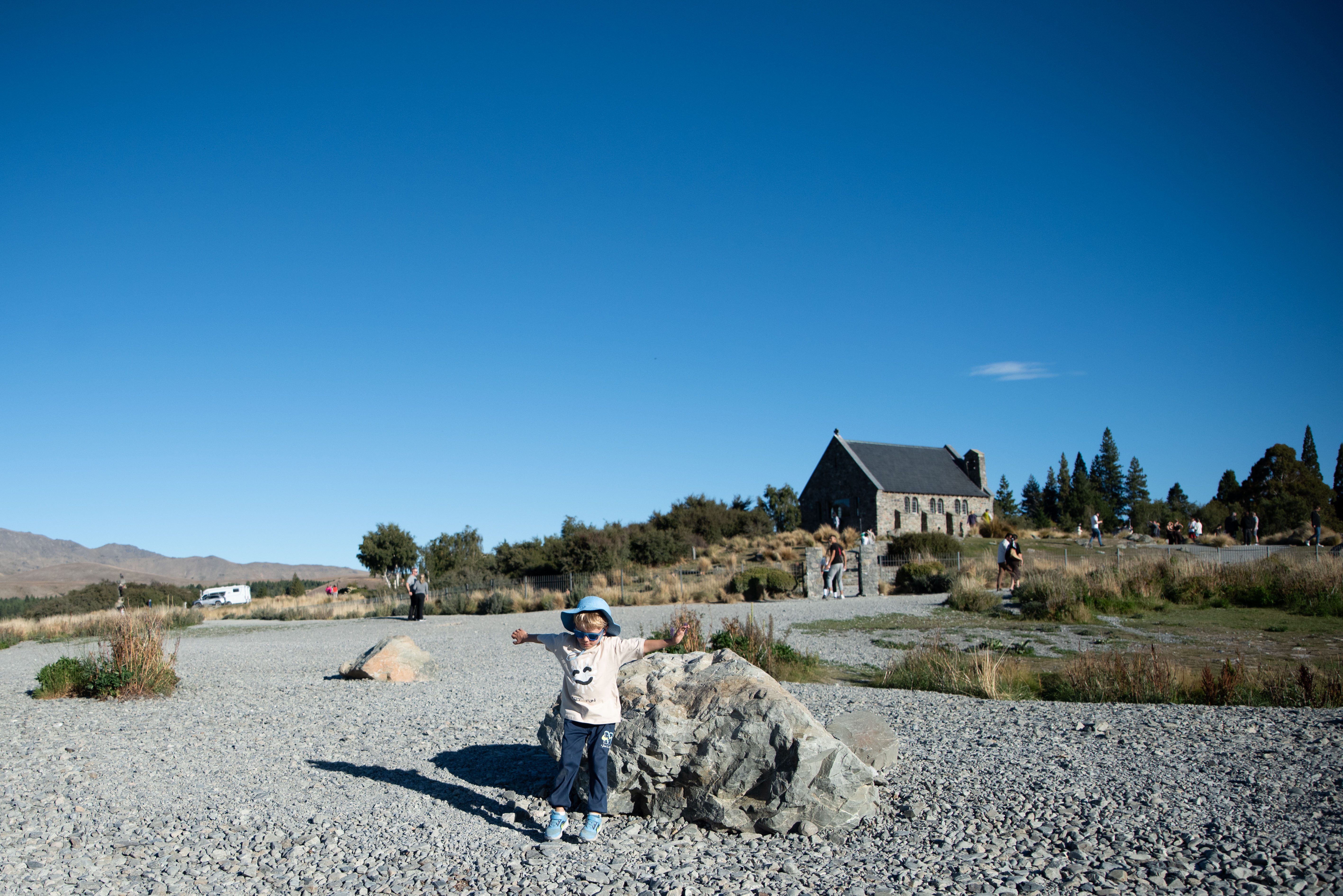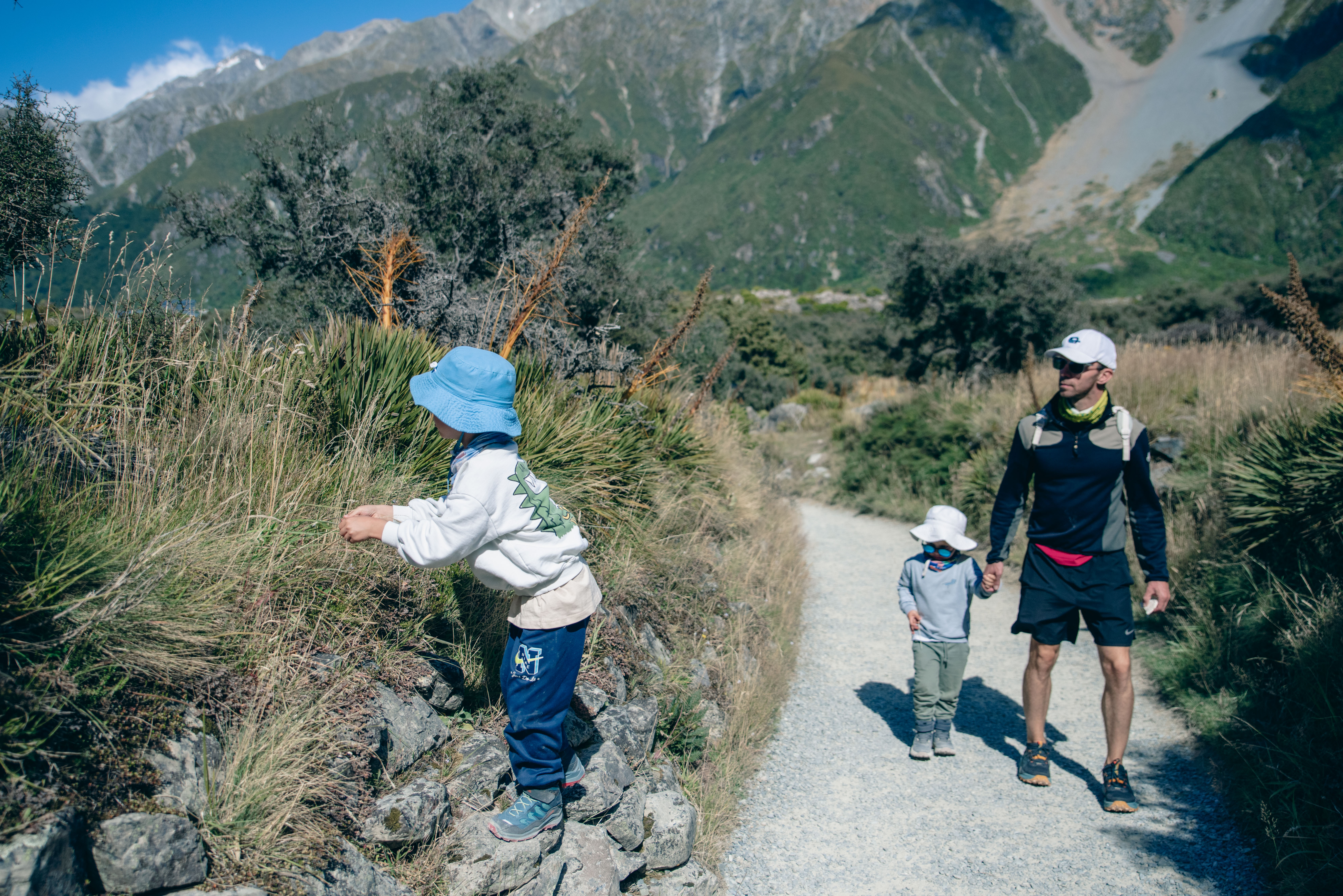 Da Lake Tekapo andiamo verso Mount Cook. Lì il paesaggio cambia di nuovo. Facciamo una camminata di 6 chilometri con i bambini, e già questo mi sembra notevole. C’è un vento folle, di quelli che ti prendono il corpo intero, ti spostano il cappello, ti fanno stringere gli occhi e ridere nello stesso momento. È bellissimo. Bello davvero, senza bisogno di aggiungere altro. Ricordo il vento più di tutto: il rumore, la forza, i bambini che continuano ad andare.