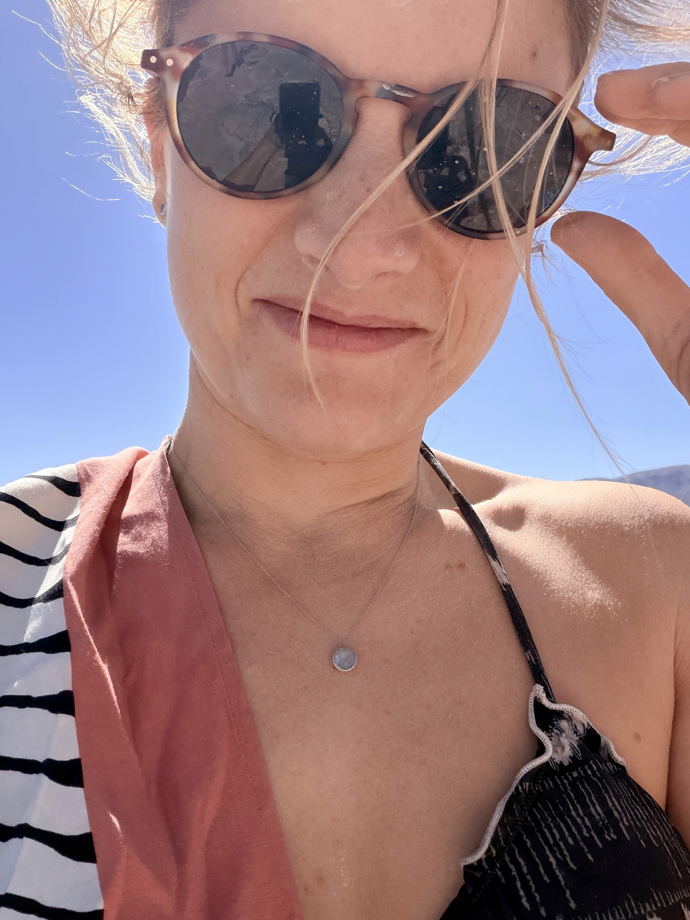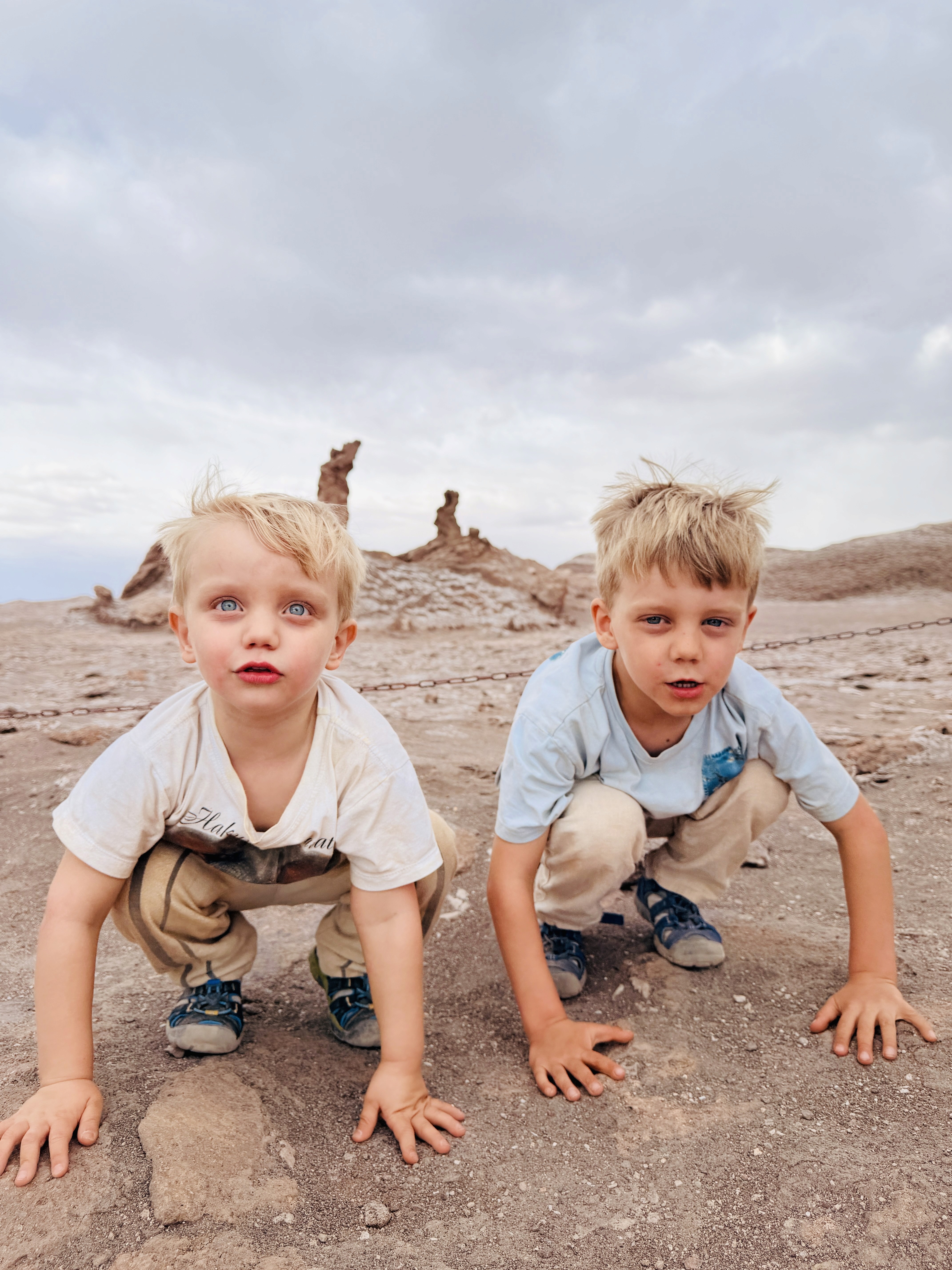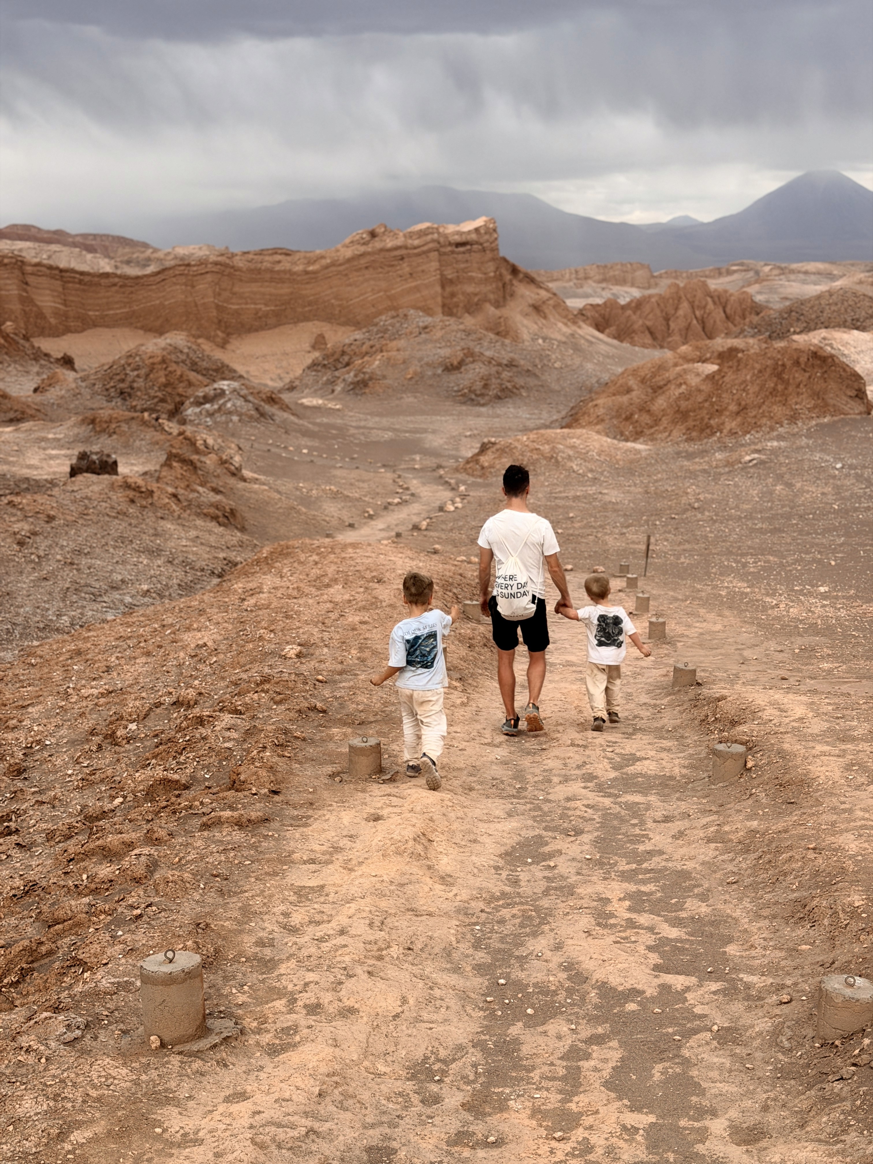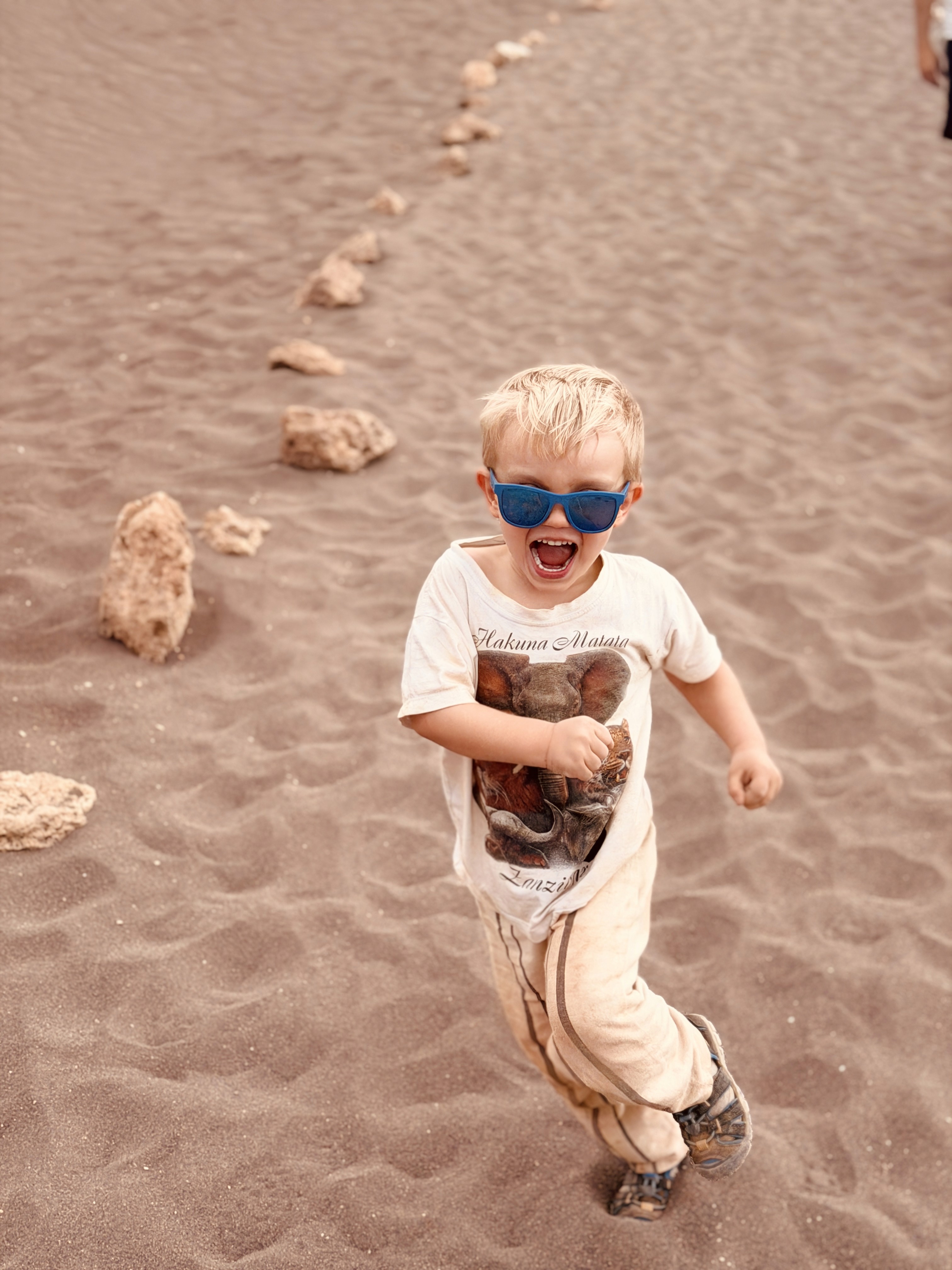 L’acqua è così salina che ti morde la pelle. I bimbi potevano fare solo un tuffo veloce. Axel si è anche toccato gli occhi e gli bruciavano tantissimo. Il vento era fortissimo e la passeggiata nel deserto sotto il sole cocente, con la sabbia negli occhi, è stata lunga. Poi la coda per la doccia, i costumi rovinati dal sale… no grazie.