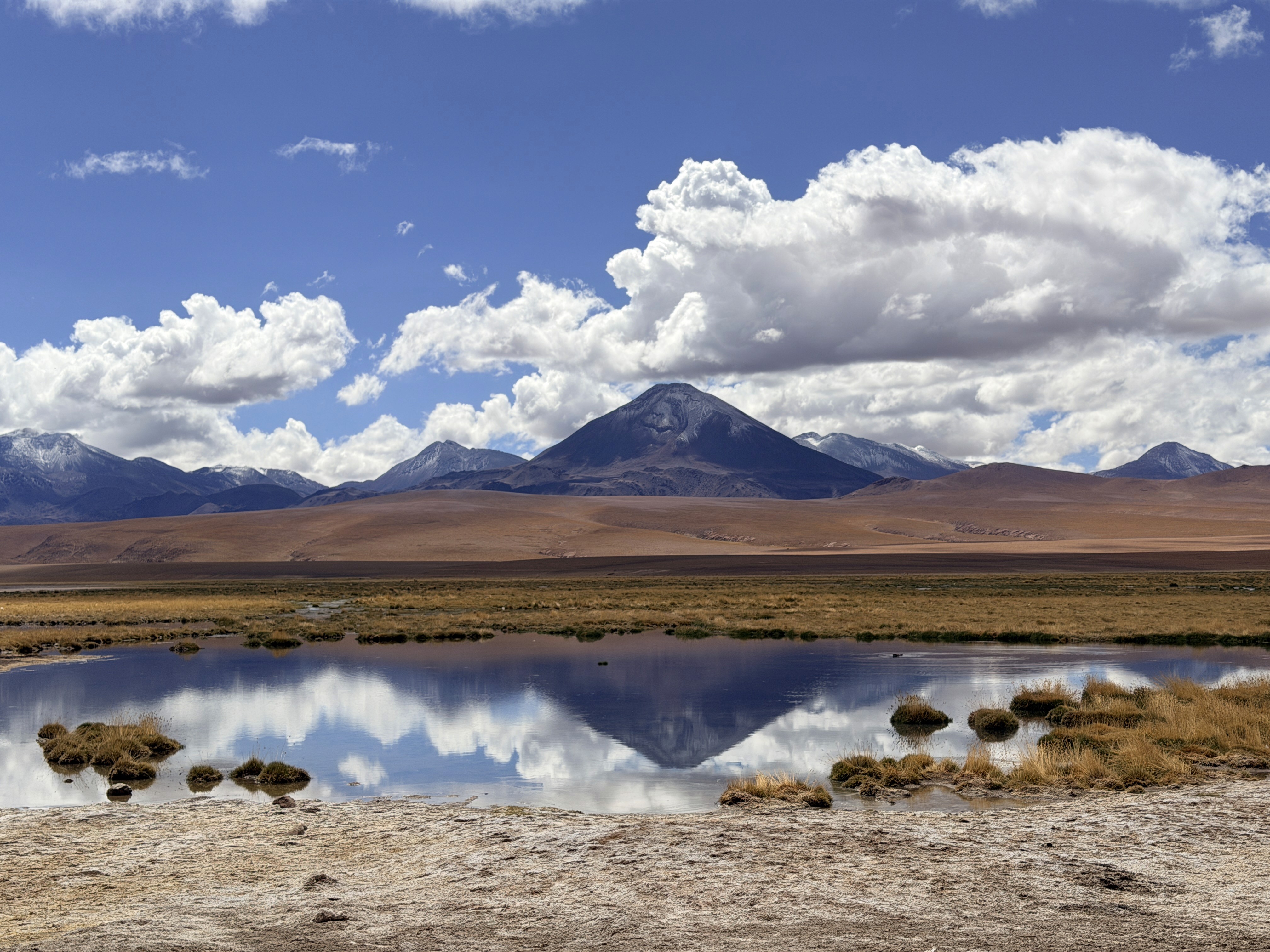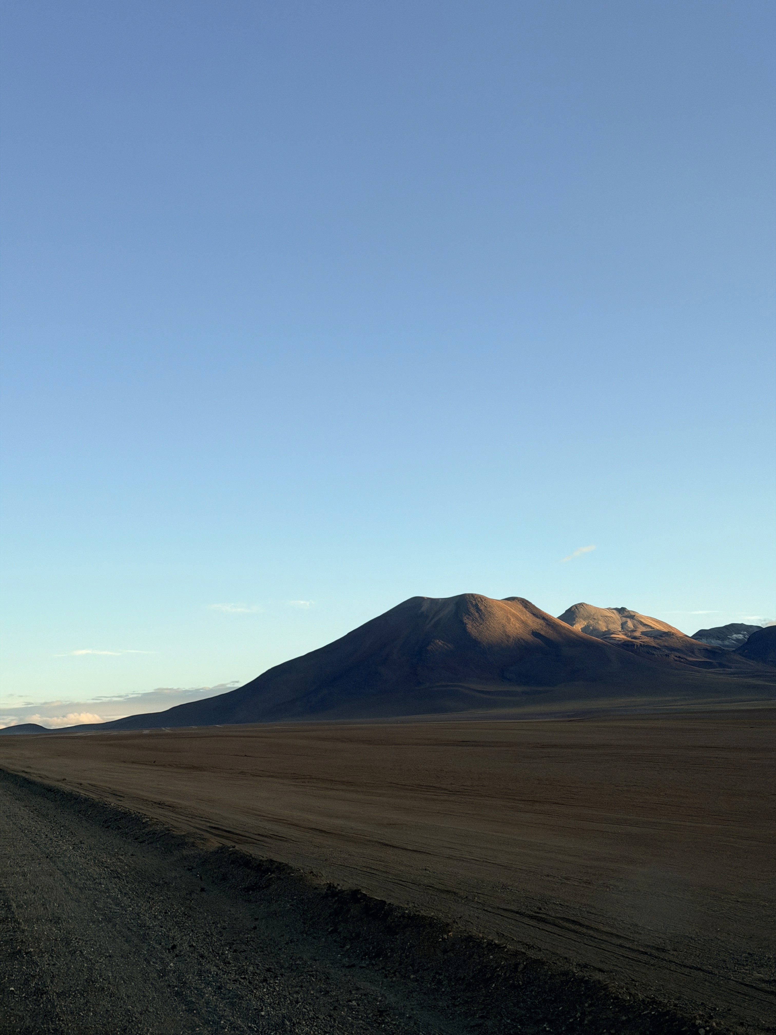 Davanti a noi ci sono montagne altissime, sui 5-6 mila metri, e diversi vulcani, tra cui il vulcano Tao e il Licancabur. La luce del mattino rende tutto ancora più bello.