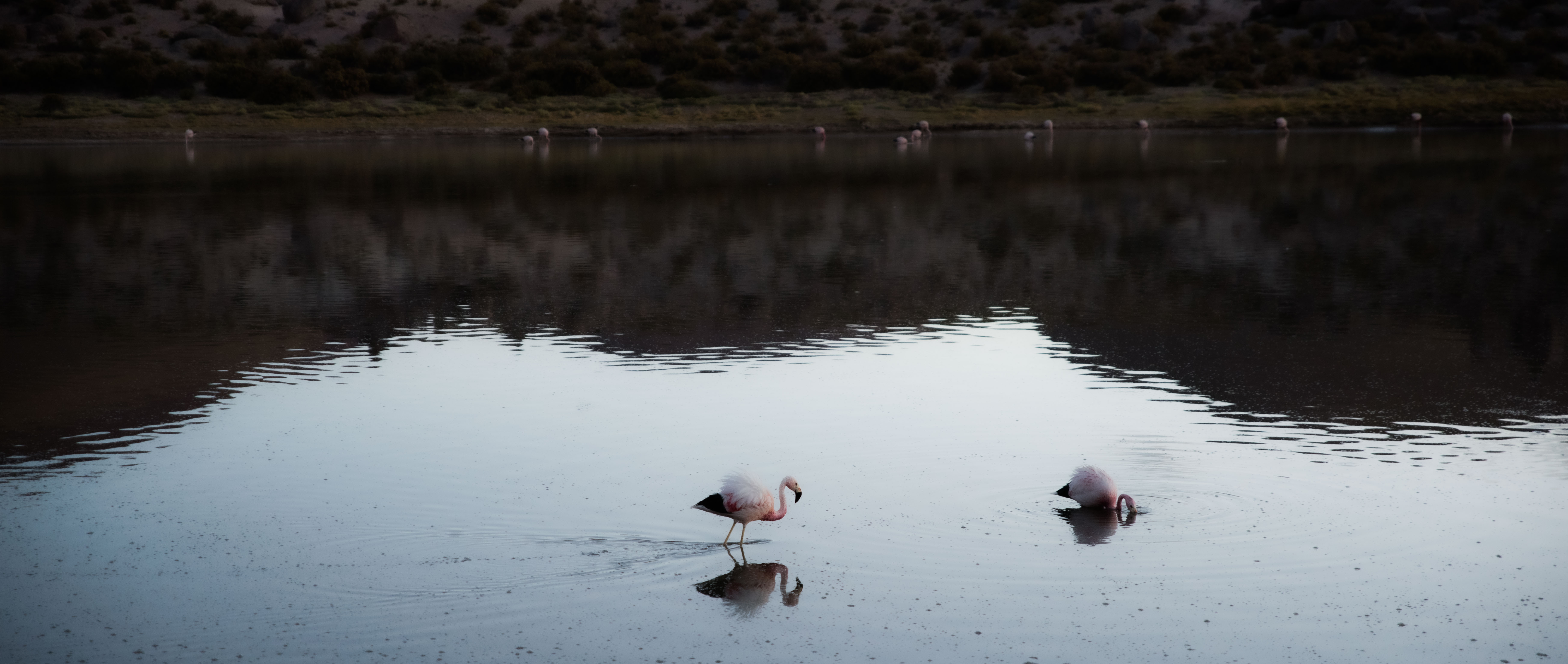La strada per arrivare su è molto tortuosa e in certi punti anche messa male, però è super panoramica. Quando sorge il sole passiamo accanto a un piccolo laghetto che si chiama Vado Putana, pieno di fenicotteri. Tantissimi, molto più che a Laguna Chaxa.