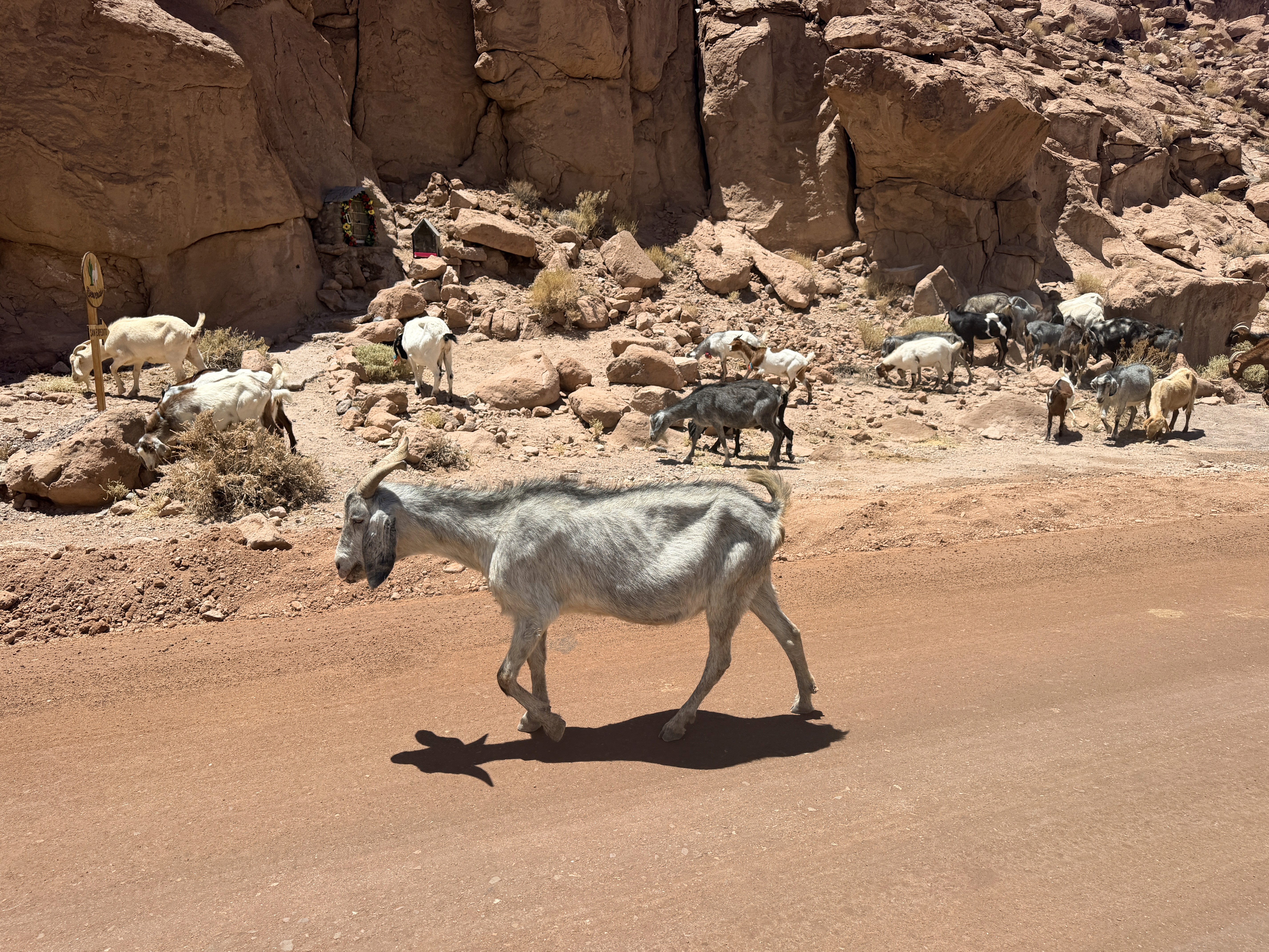 Ci muoviamo in macchina da una destinazione all’altra e in mezzo non c’è nulla. Forse qualche asino, qualche cima di vulcano innevata in lontananza, sabbia ovunque, pietre irregolari e appuntite.