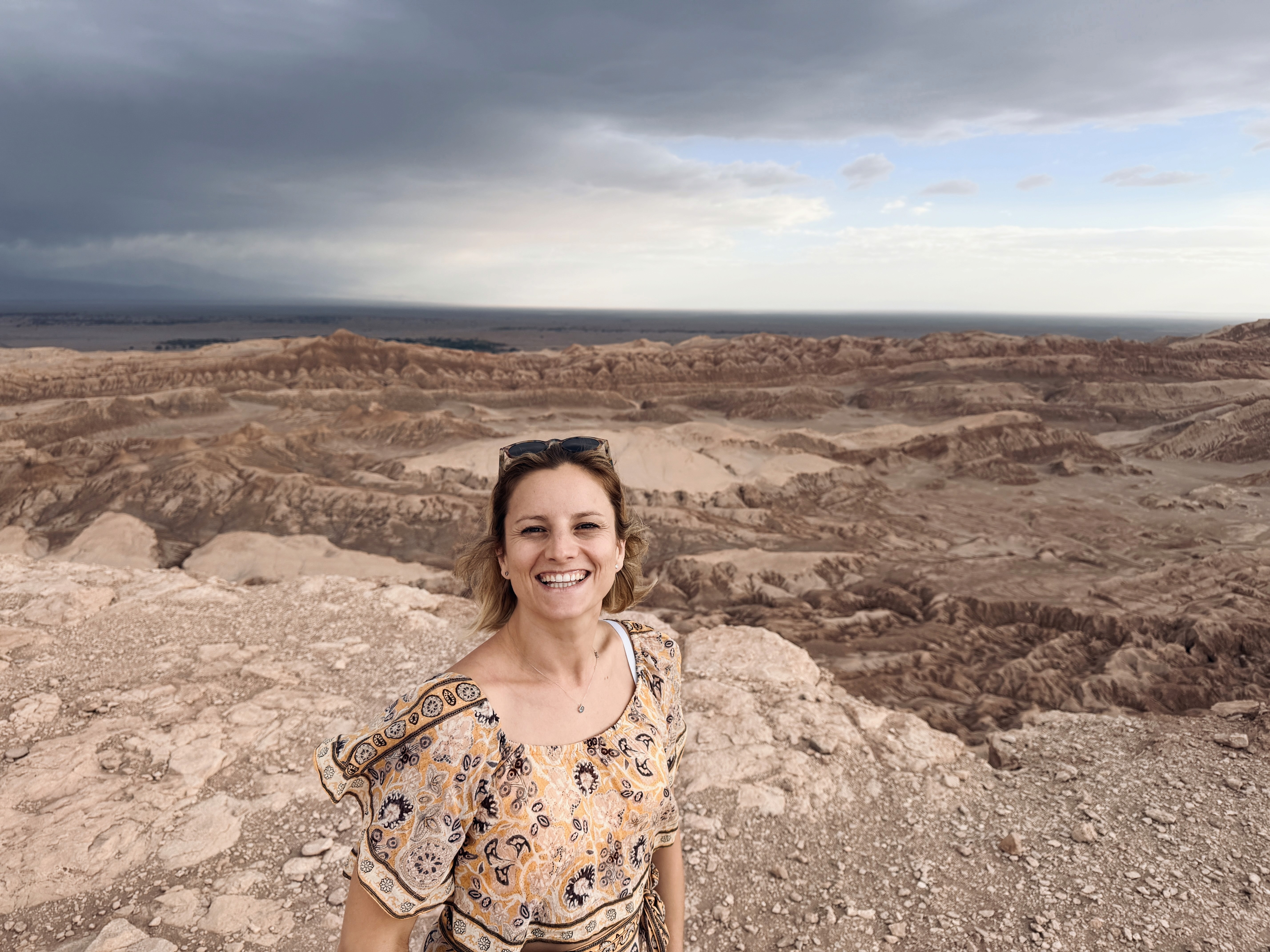 Avevo chiesto consiglio se fosse meglio salirci subito o alla fine del percorso, perché sapevo che da lì c’era la vista migliore. Mi avevano consigliato di andare subito. Col senno di poi, sarei salita sulla duna più tardi, più vicina al tramonto, con la luce giusta. La vista da lassù è qualcosa di indescrivibile. A parole, ma anche in foto. Le immagini non rendono. È un po’ come quando fotografi la luna con il telefono o le onde del mare: sai che è incredibile, ma la foto non lo racconta. Da lassù ti senti davvero piccolo. Il paesaggio è enorme, silenzioso, infinito.