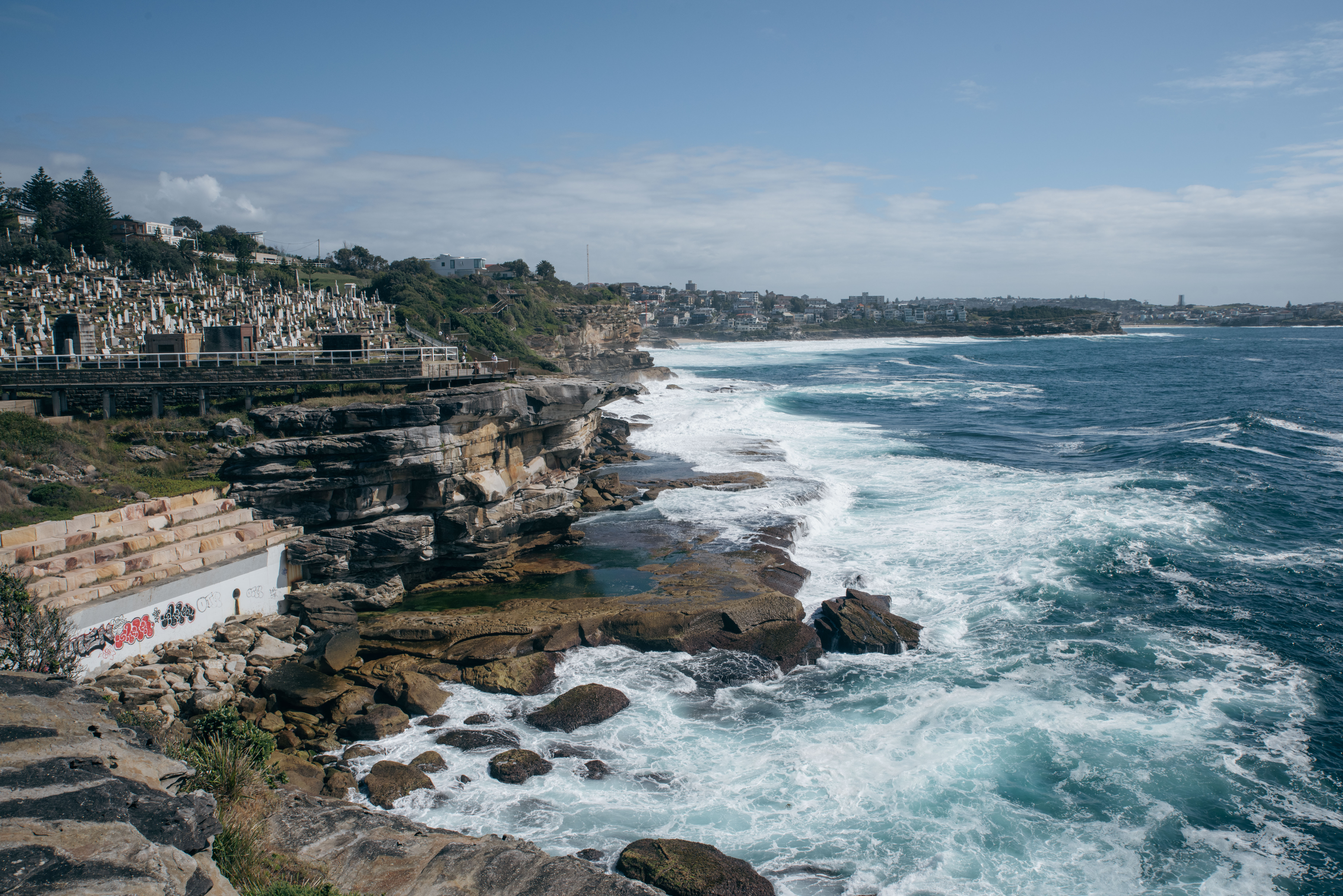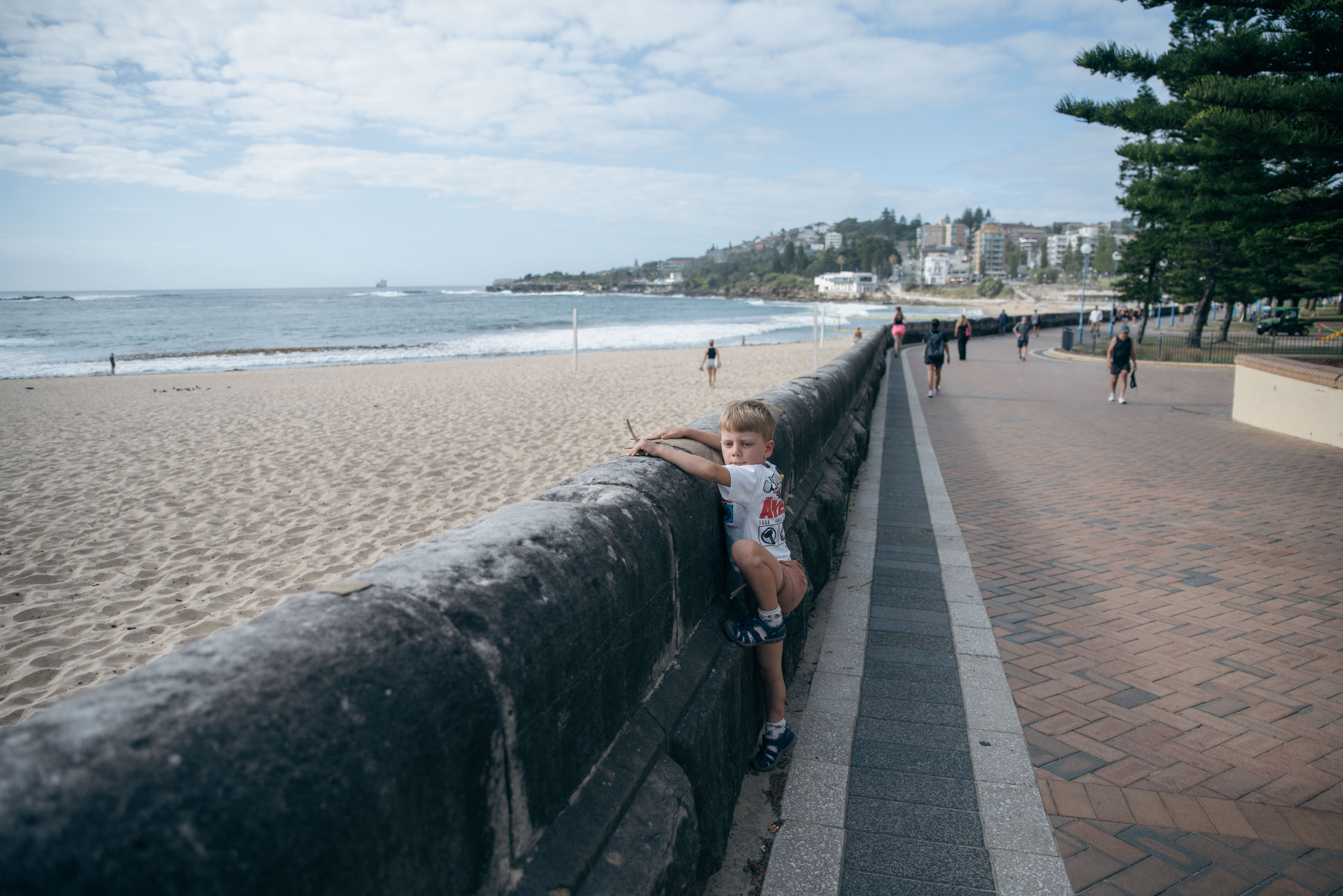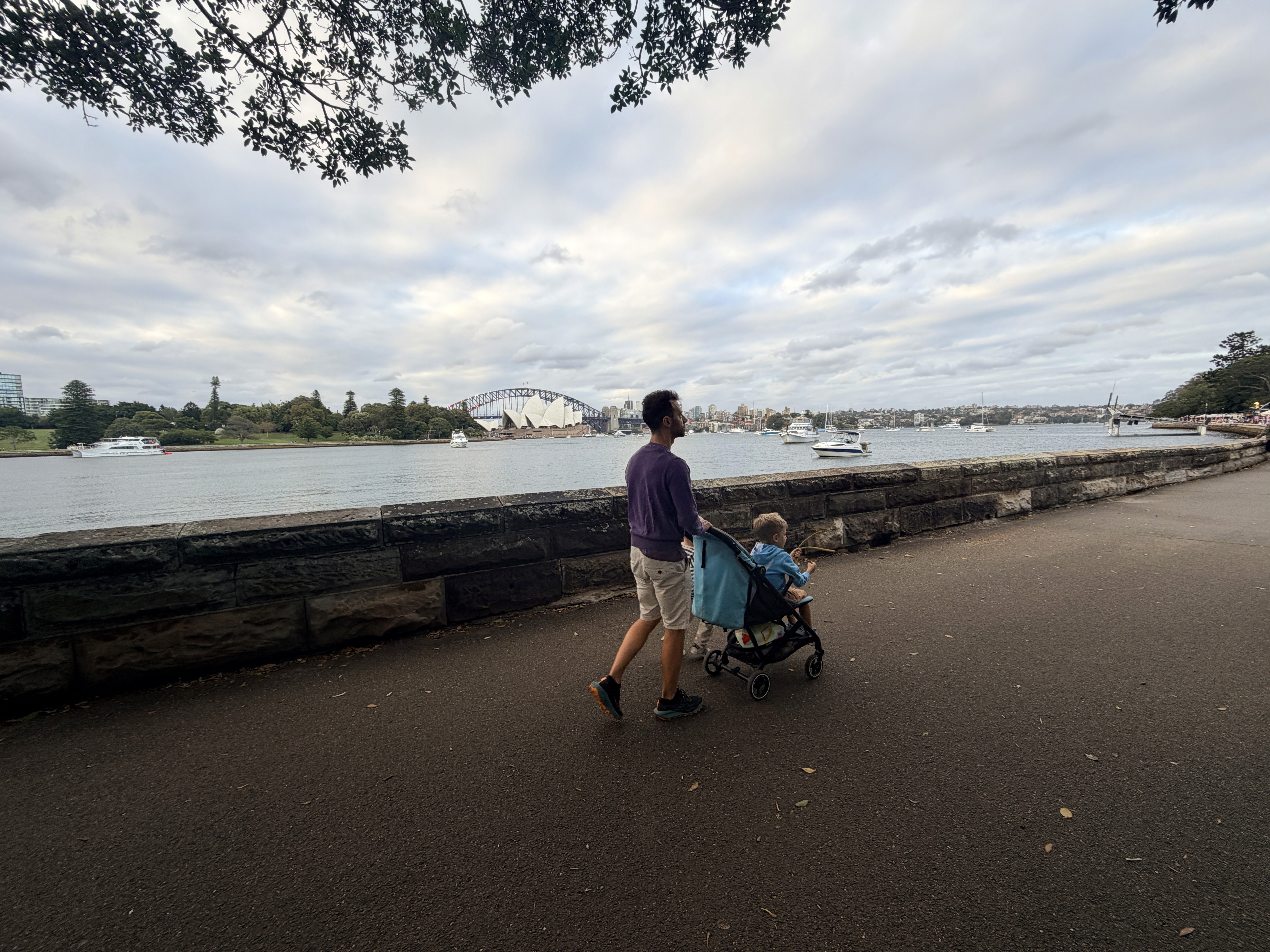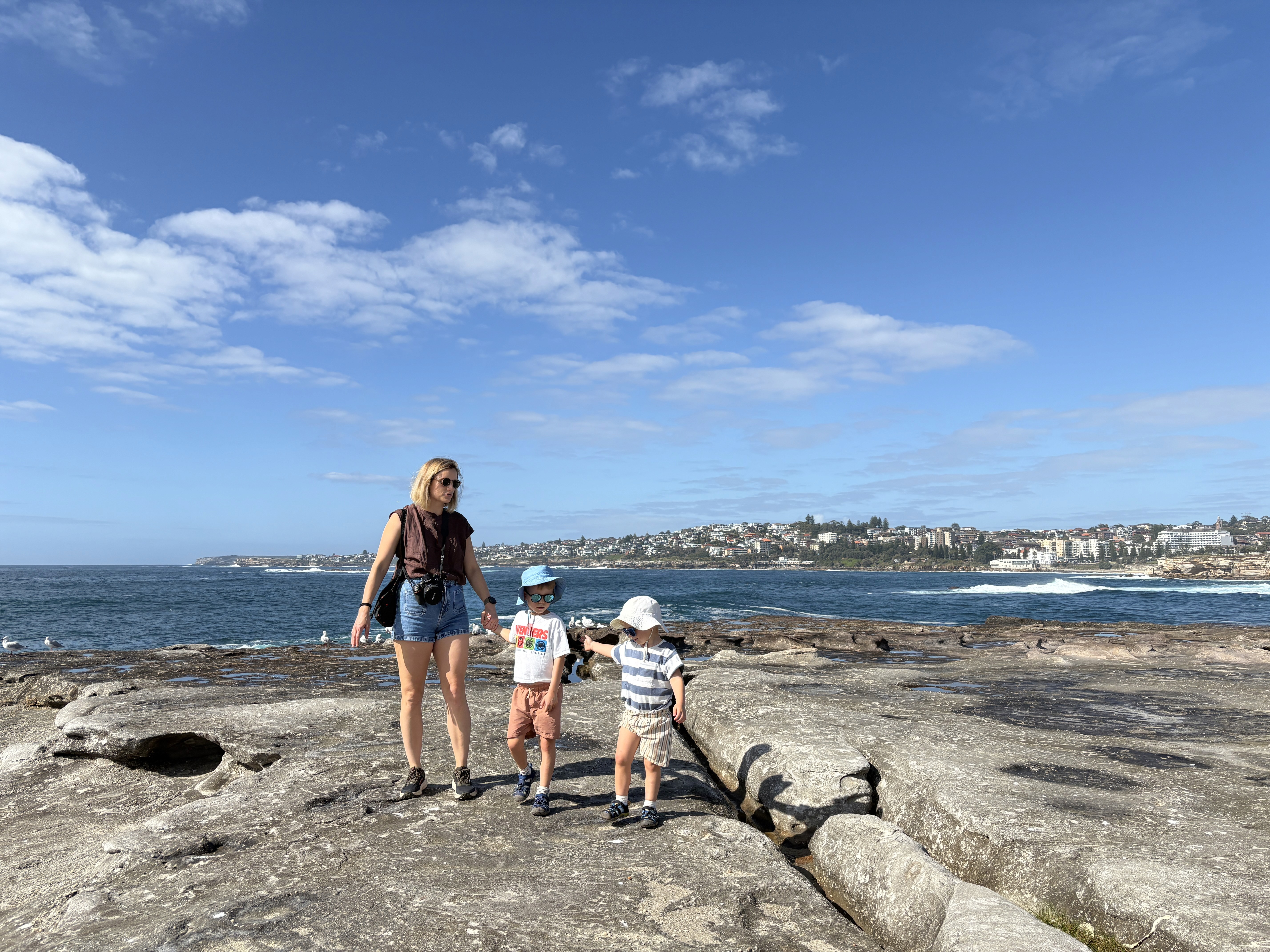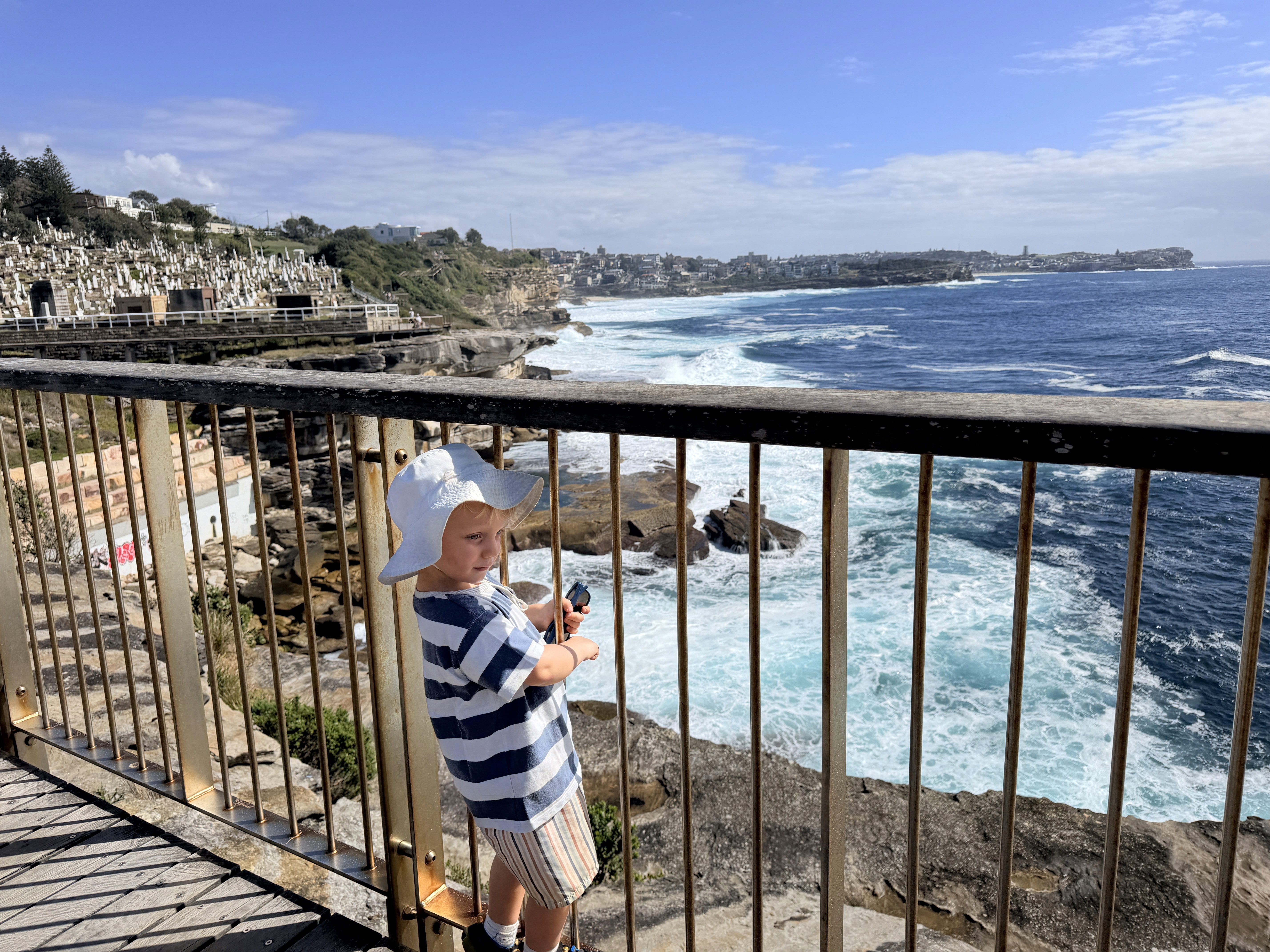 Poi c’è Bondi. Abbiamo fatto la passeggiata da Coogee a Bondi all’alba — avere due bambini che ti svegliano alle sei del mattino ogni tanto aiuta! Le prime luci del giorno, i runner ovunque, l’oceano infinito: una camminata mozzafiato. Ci siamo portati il passeggino pieghevole e, nonostante le tante scale, senza non ce l’avremmo mai fatta. Ari era troppo stanco per camminare tutto il tempo, e rinunciare non era un’opzione.