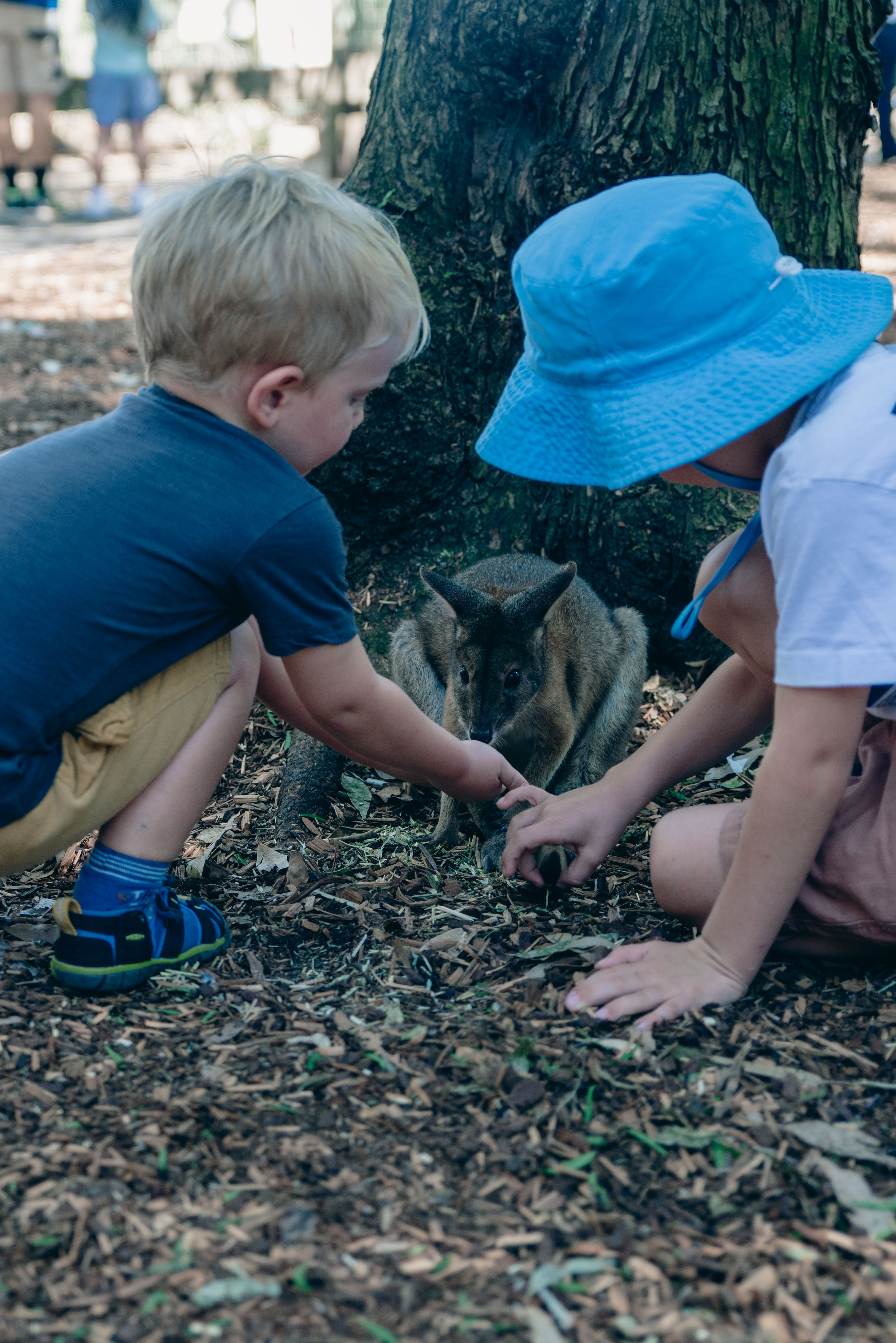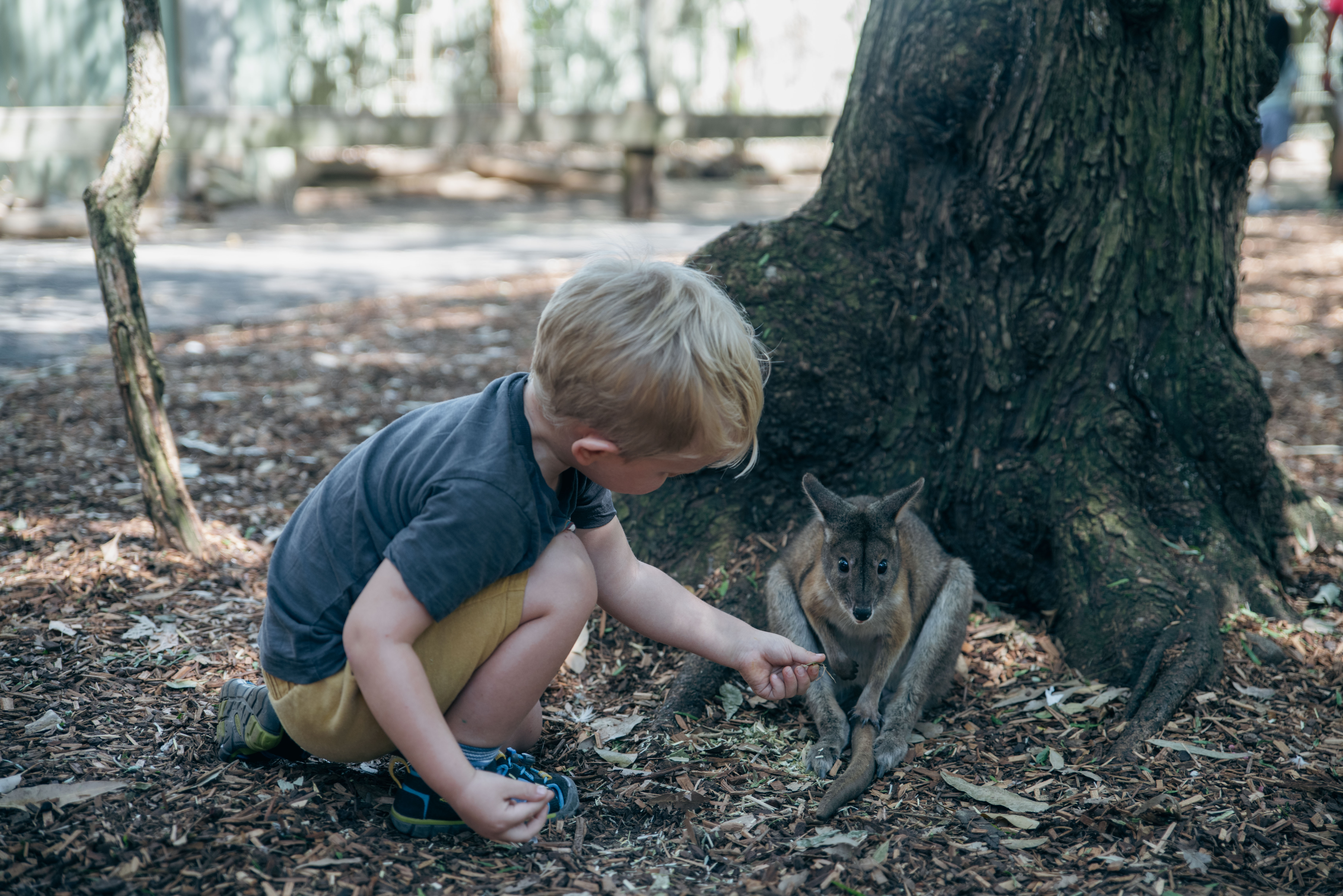 Siamo stati invece a Featherdale, un parco di recupero animali selvatici anziché lo zoo. Abbiamo accarezzato i koala e dato da mangiare ai canguri e a quelli che io ho chiamato “i canguri baby”: piccoli marsupiali che sembravano proprio canguri in miniatura. Abbiamo visto casuari, emu, wombat, quokka, dingo e wallaby (tutte parole che l’autocorrettore continua a sottolineare in rosso!). E poi i serpenti che Axel ama tanto: abbiamo visto un pitone che mangiava un topo bianco. Impressionante osservare con quanta fatica si mangia per sopravvivere.