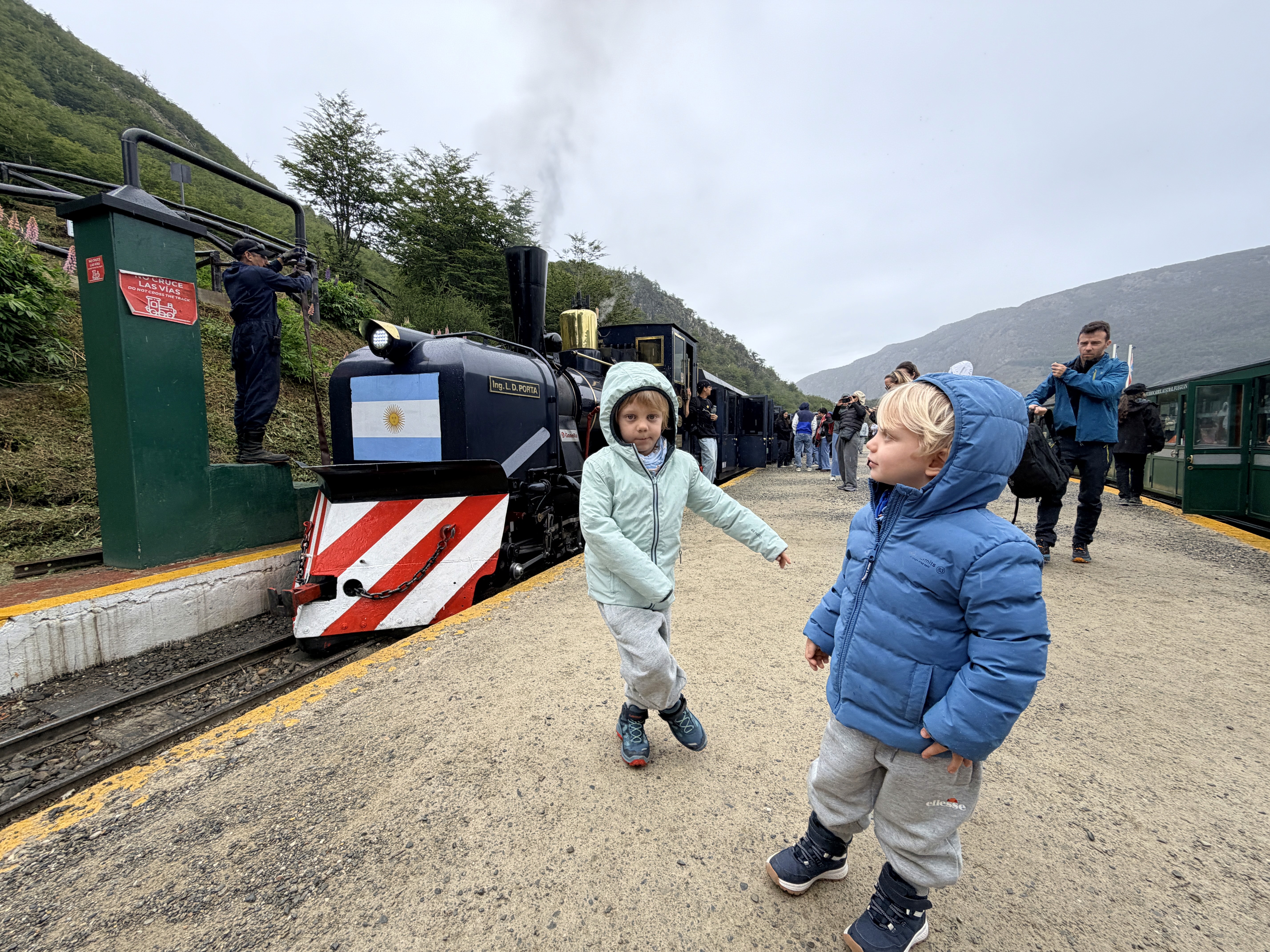 L’ingresso costava 30.000 pesos argentini per adulto, i bambini non pagavano. Per loro, però, abbiamo aggiunto il giro sul trenino: quello costruito originariamente dai prigionieri deportati qui, destinati ai lavori forzati. La ferrovia veniva costruita man mano che si addentravano nella foresta, abbattendo alberi. Ancora oggi si vedono tronchi tagliati a circa 70 cm dal suolo – probabilmente lavoravano nella neve. Ora quelle distese piatte vengono chiamate “il cimitero degli alberi”.