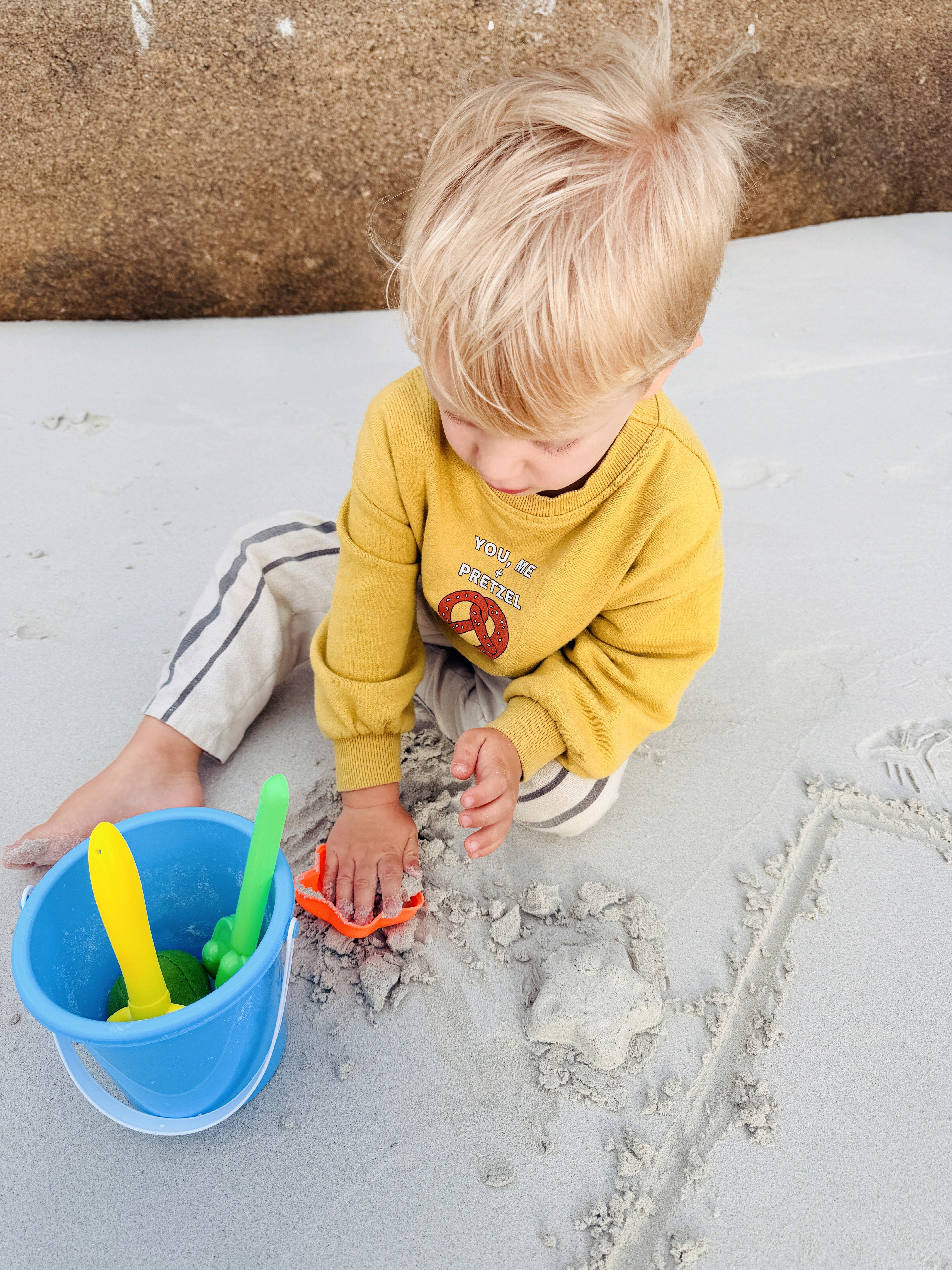Pranziamo con la pasta preparata al mattino. I bambini giocano al parco giochi all’ombra. Noi respiriamo e ci riposiamo dai castelli di sabbia, dai salti nell’acqua e dalle code di sirena di sabbia.