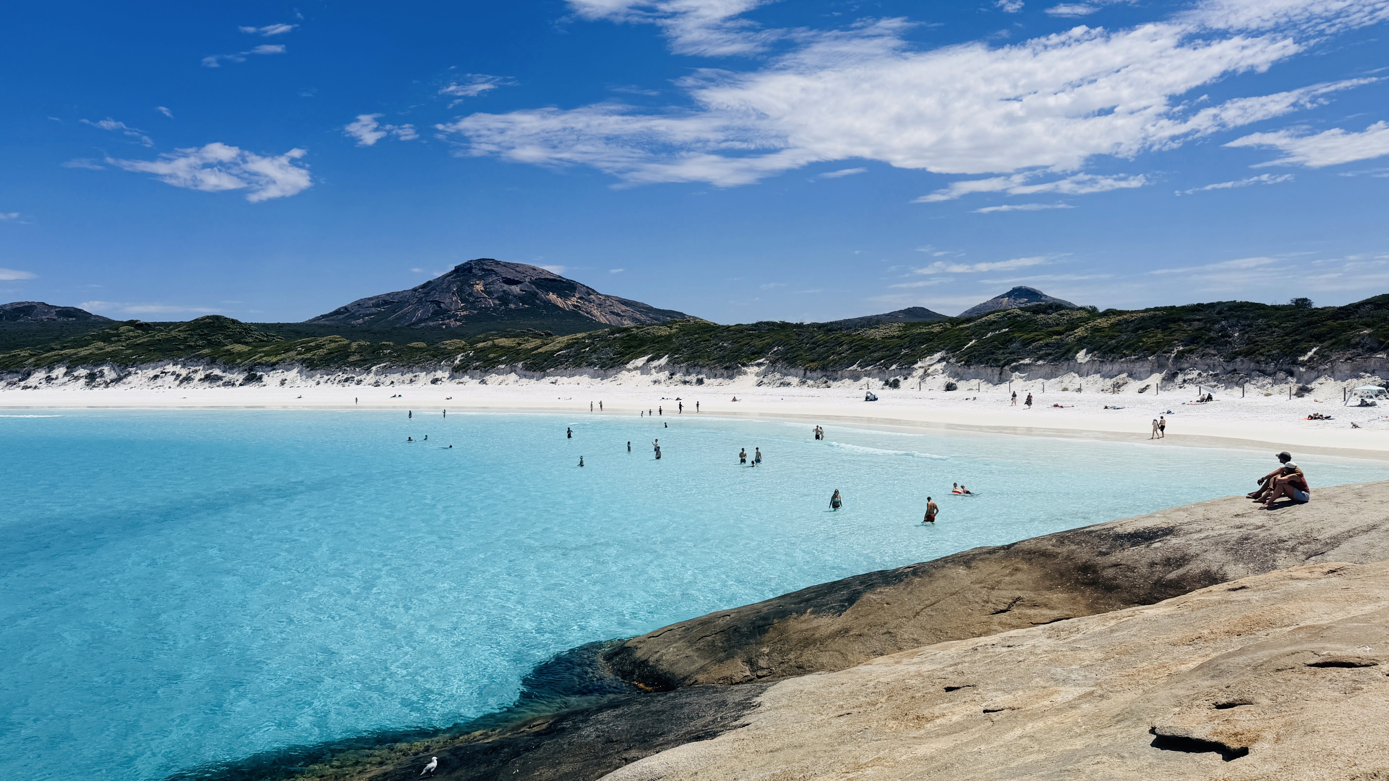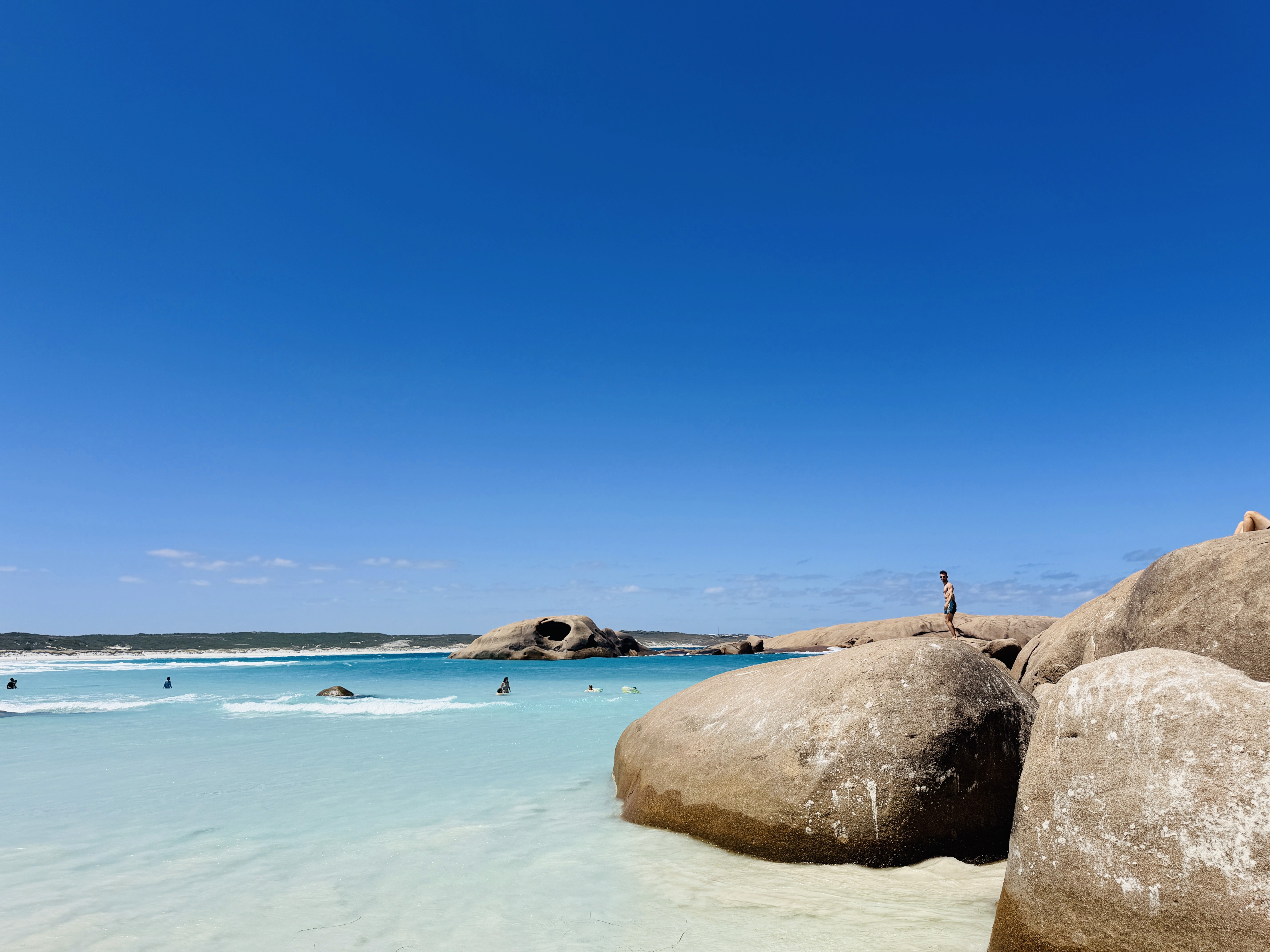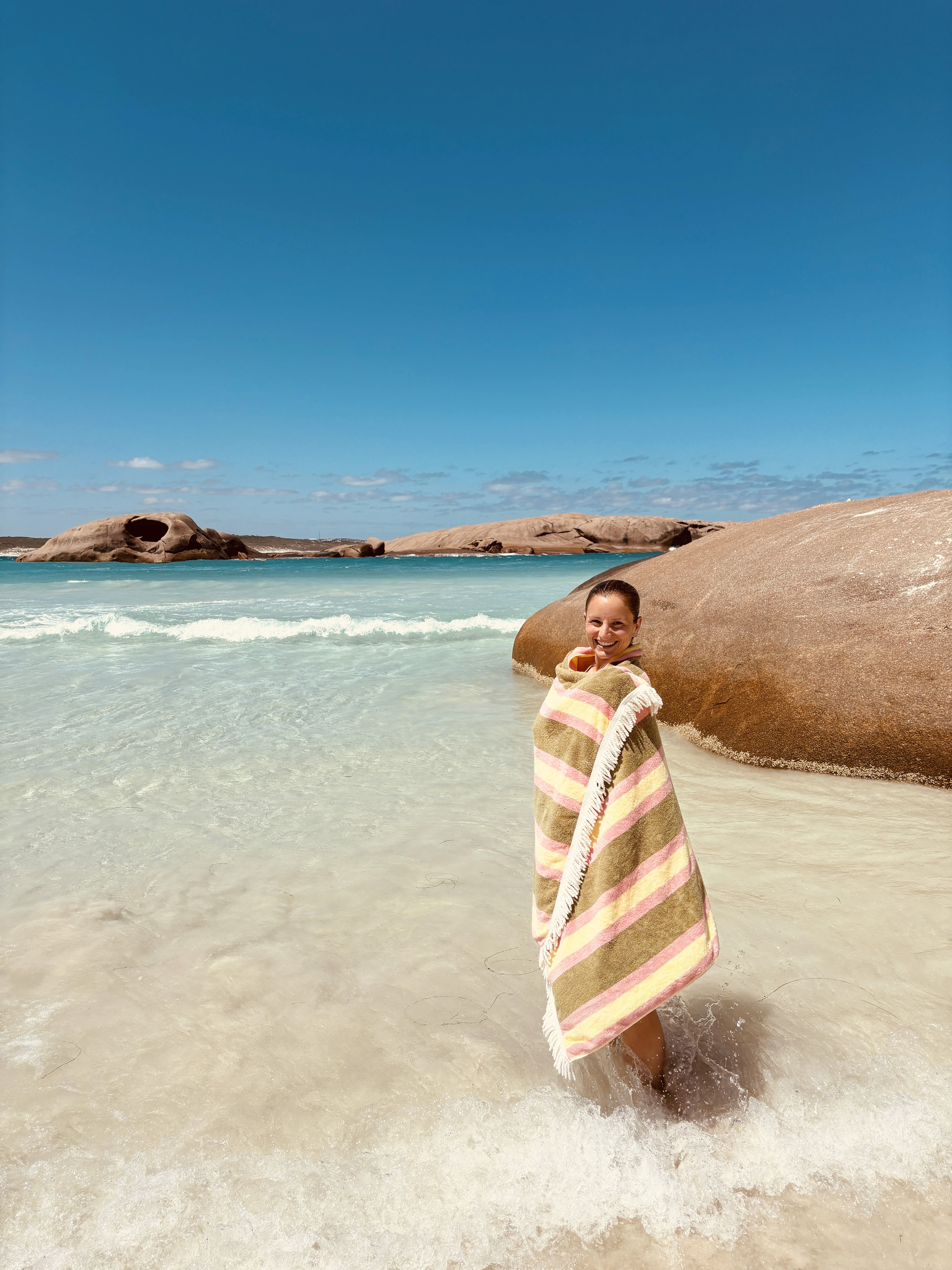La spiaggia di Greens Pool ci accoglie con un profumo di eucalipto e aria fresca.