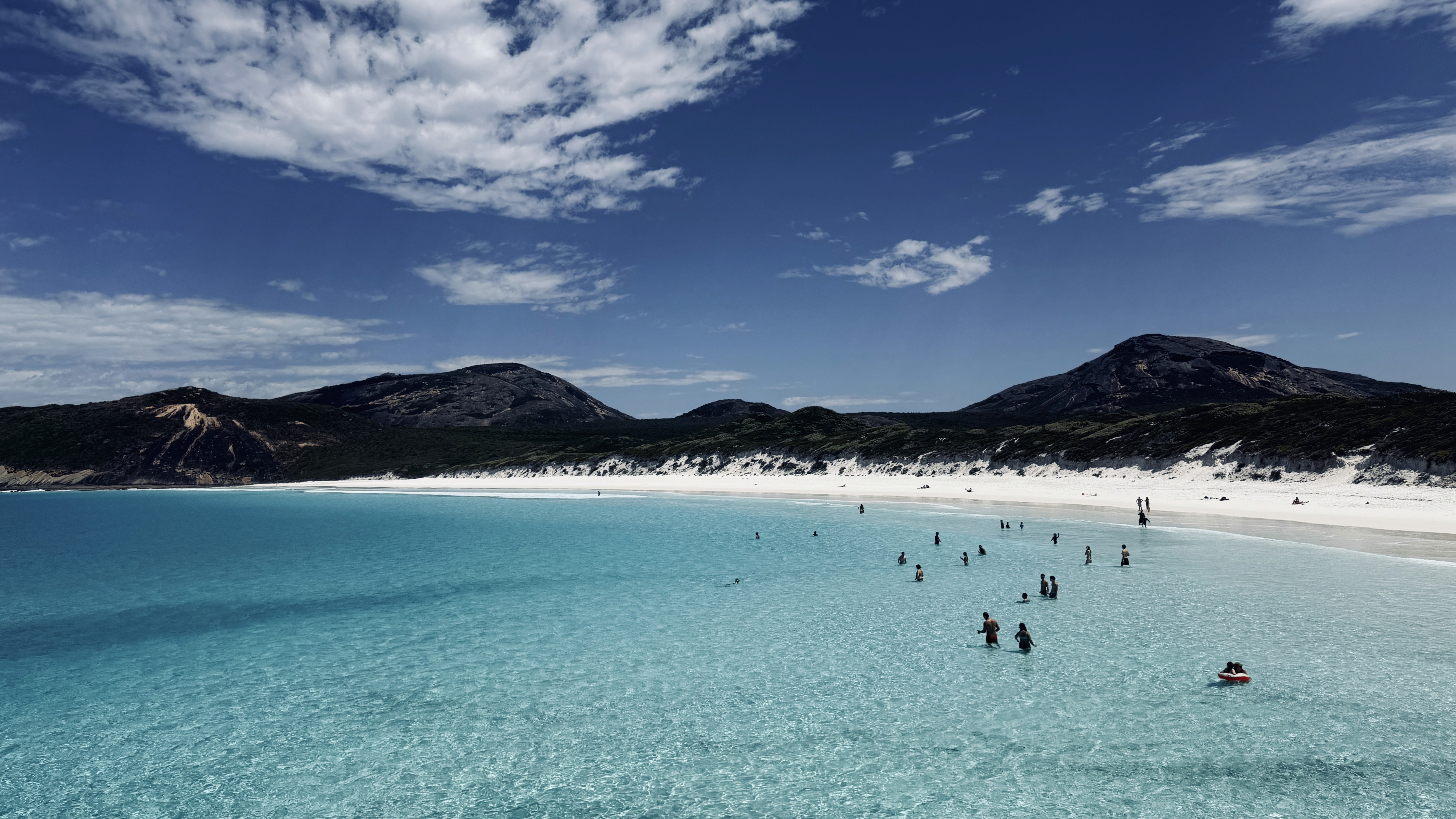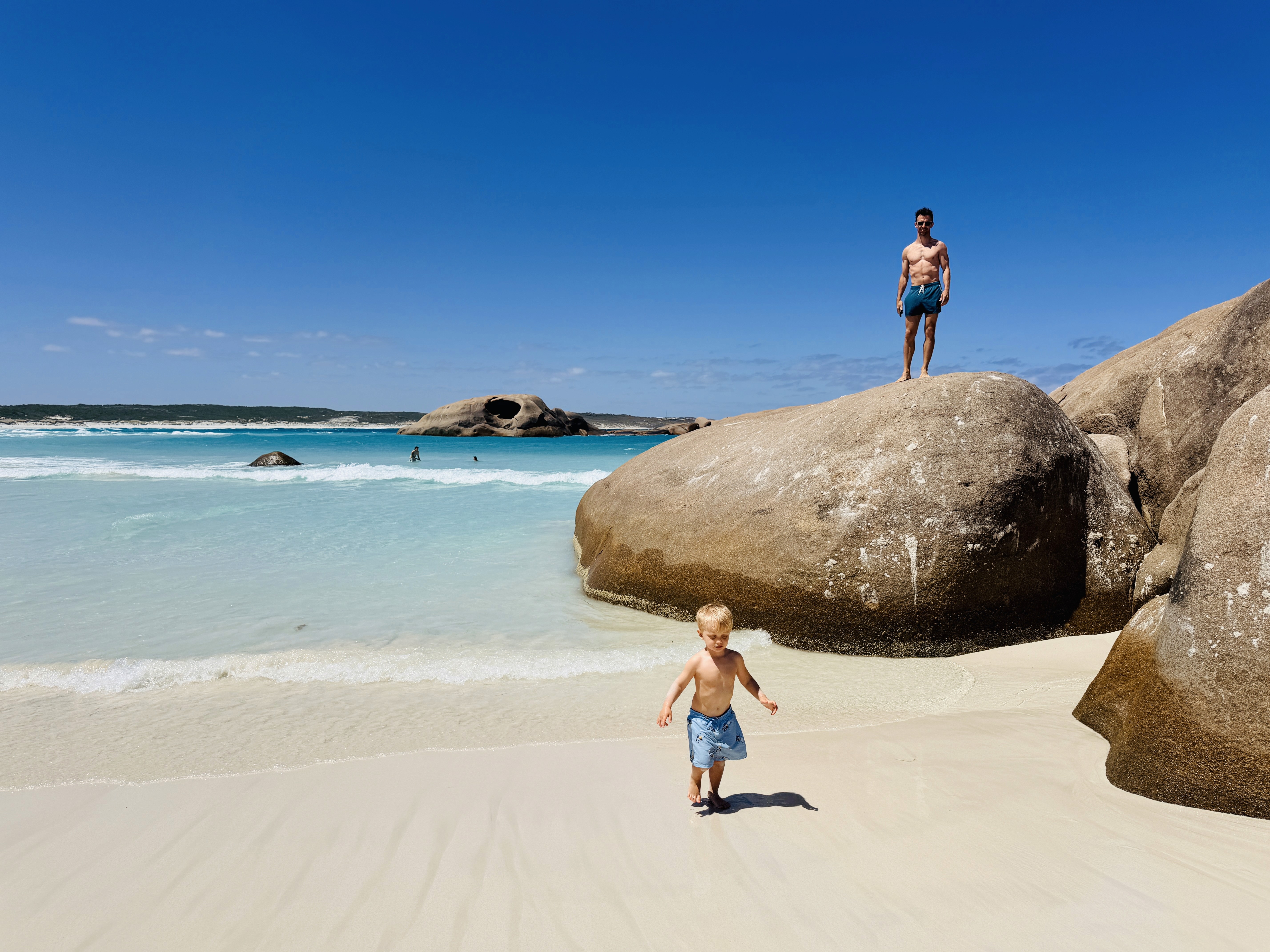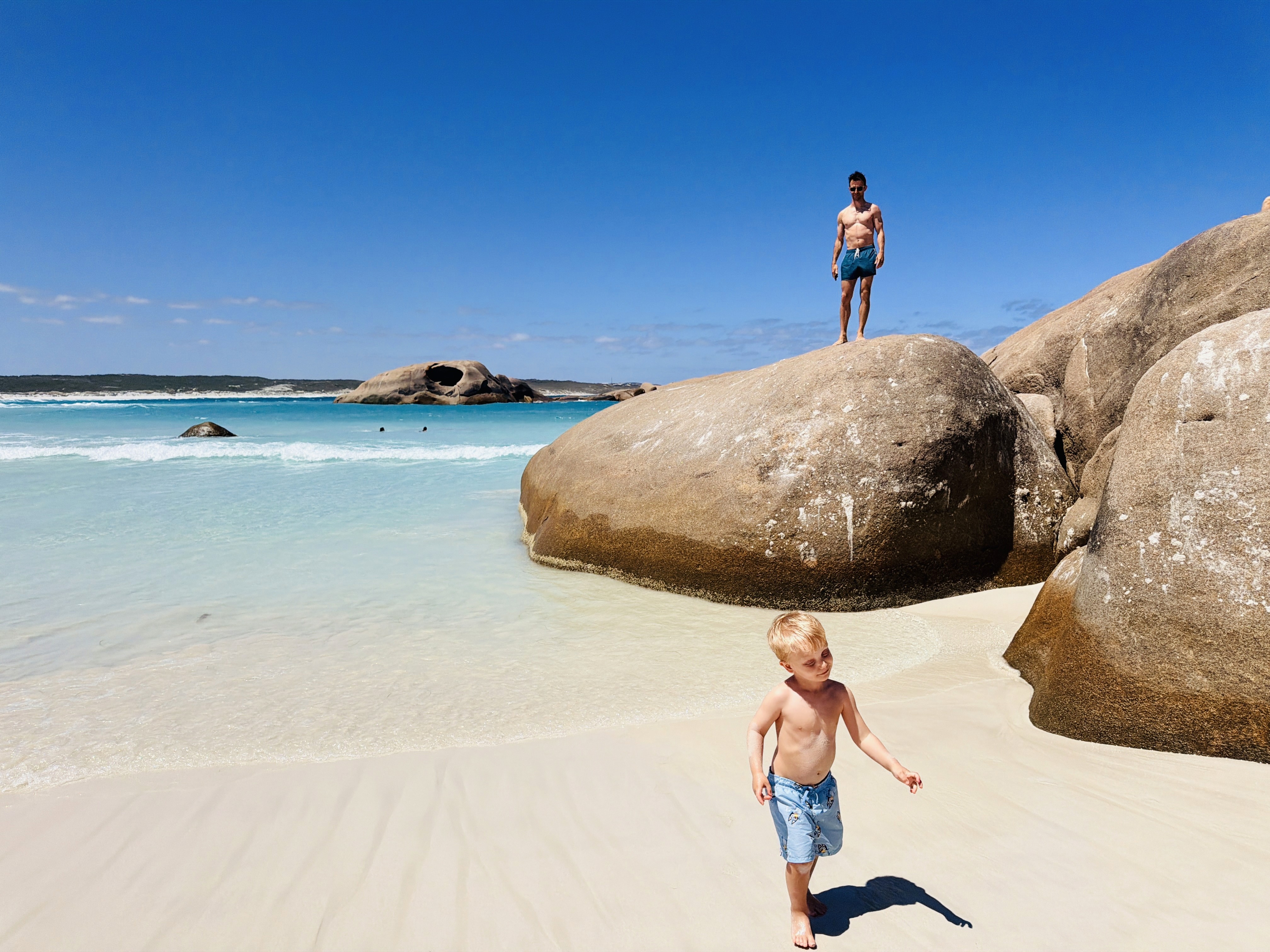 La spiaggia che ci é piaciuta di più era Hellfire bay, accanto a Lucky Bay, a un’ora di macchina da Esperance. Li di solito ci sono i canguri che dormono sulla spiaggia. Ma quando siamo arrivati noi non c’era nessun canguro. Tante auto parcheggiate direttamente sulla spiaggia di Lucky Bay e un odore sgradevole di alga. Non siamo rimasti troppo e ci siamo spostati a Hellfire Bay, dove Paolo ha visto delfini nuotare vicini a riva.
