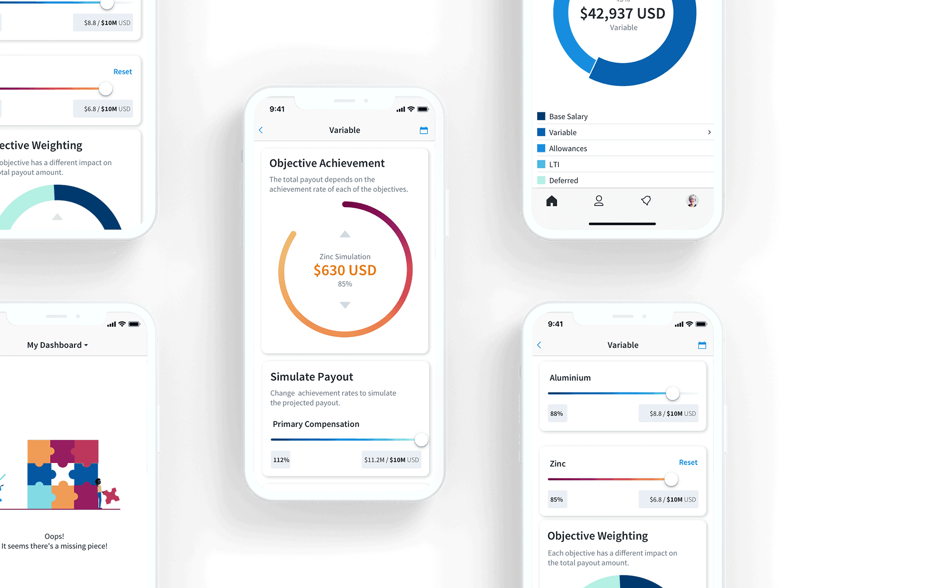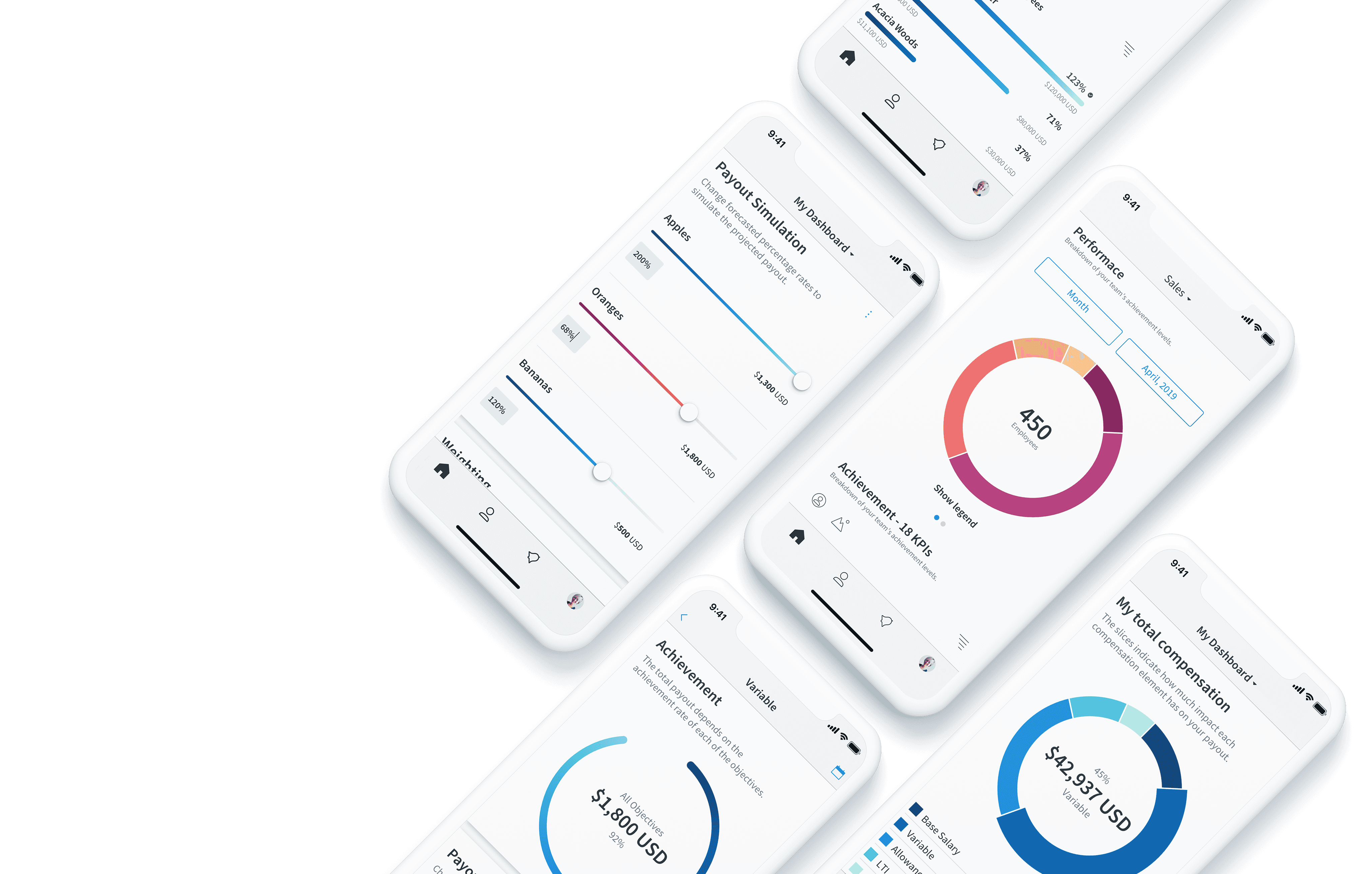 An employee is able to view how his compensation breaks down and simulate earnings depending on his performance on different KPIs. He's also able to predict future sales by looking at the patterns created through past earnings. He can also comprehend how target curves, payout curves and payout thresholds work.